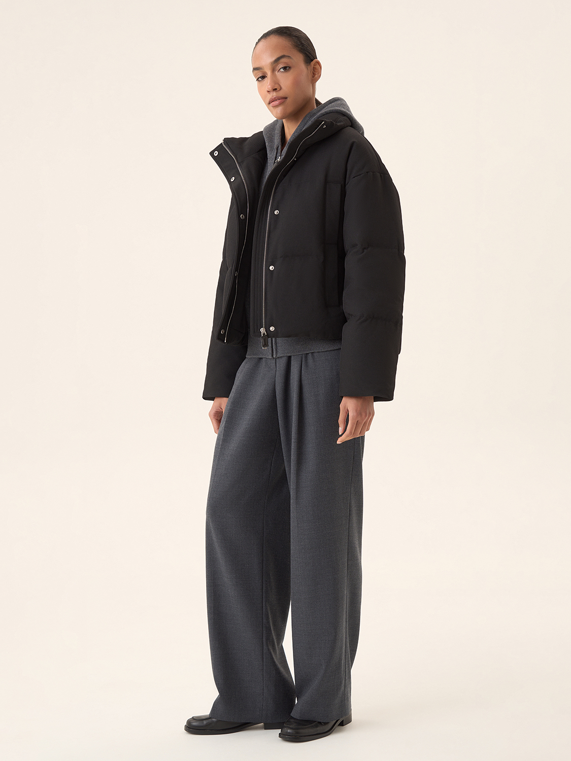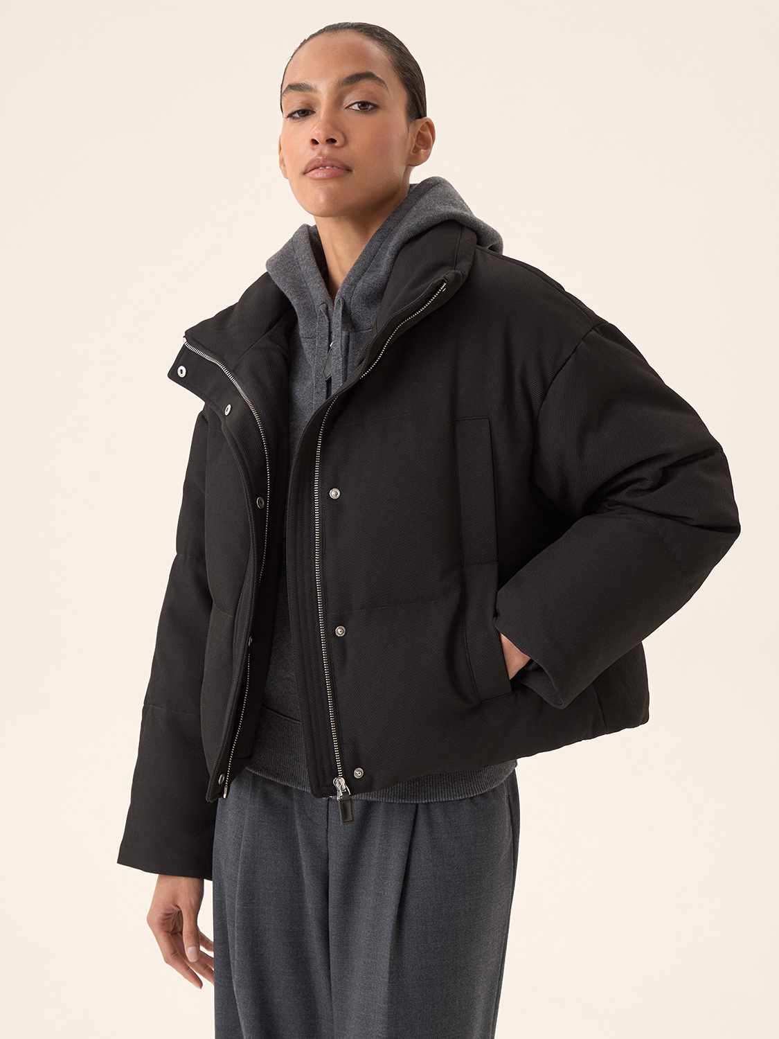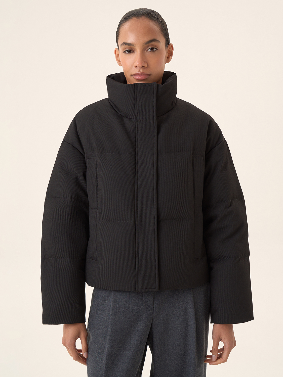 Укороченная куртка без капюшона — это универсальный элемент гардероба, который легко сочетать с различными стилями. Выполненная из качественного материала, она обеспечивает тепло и комфорт в холодное время года. Лаконичный дизайн и прямой крой делают эту куртку идеальной для создания как повседневных, так и более формальных аутфитов. Можно смело дополнять ее палантинами, чтобы придать образу стильный акцент и обеспечить дополнительное тепло. Эта модель станет вашим надежным спутником в зимние дни, позволяя оставаться модной и чувствовать себя уютно.