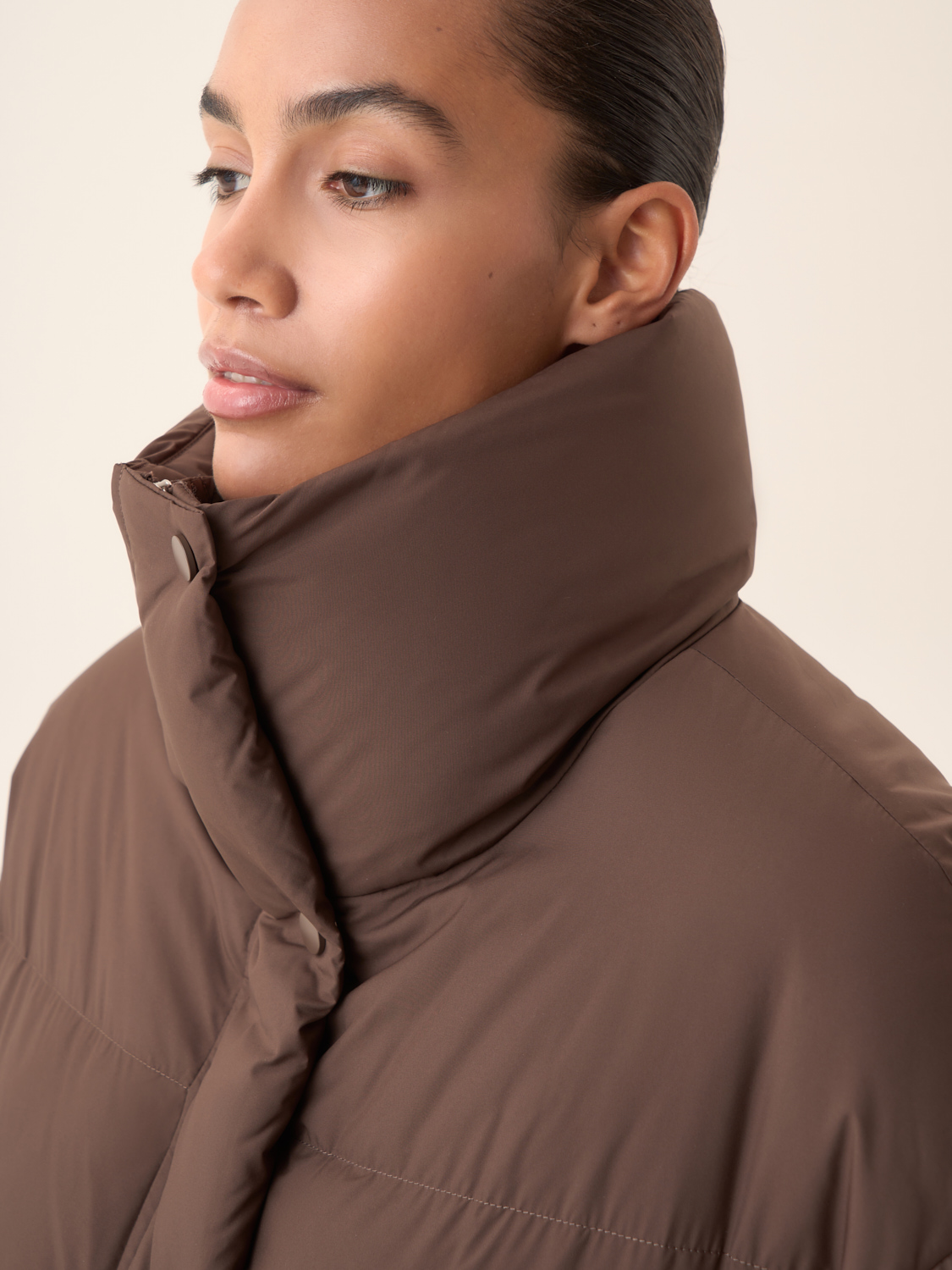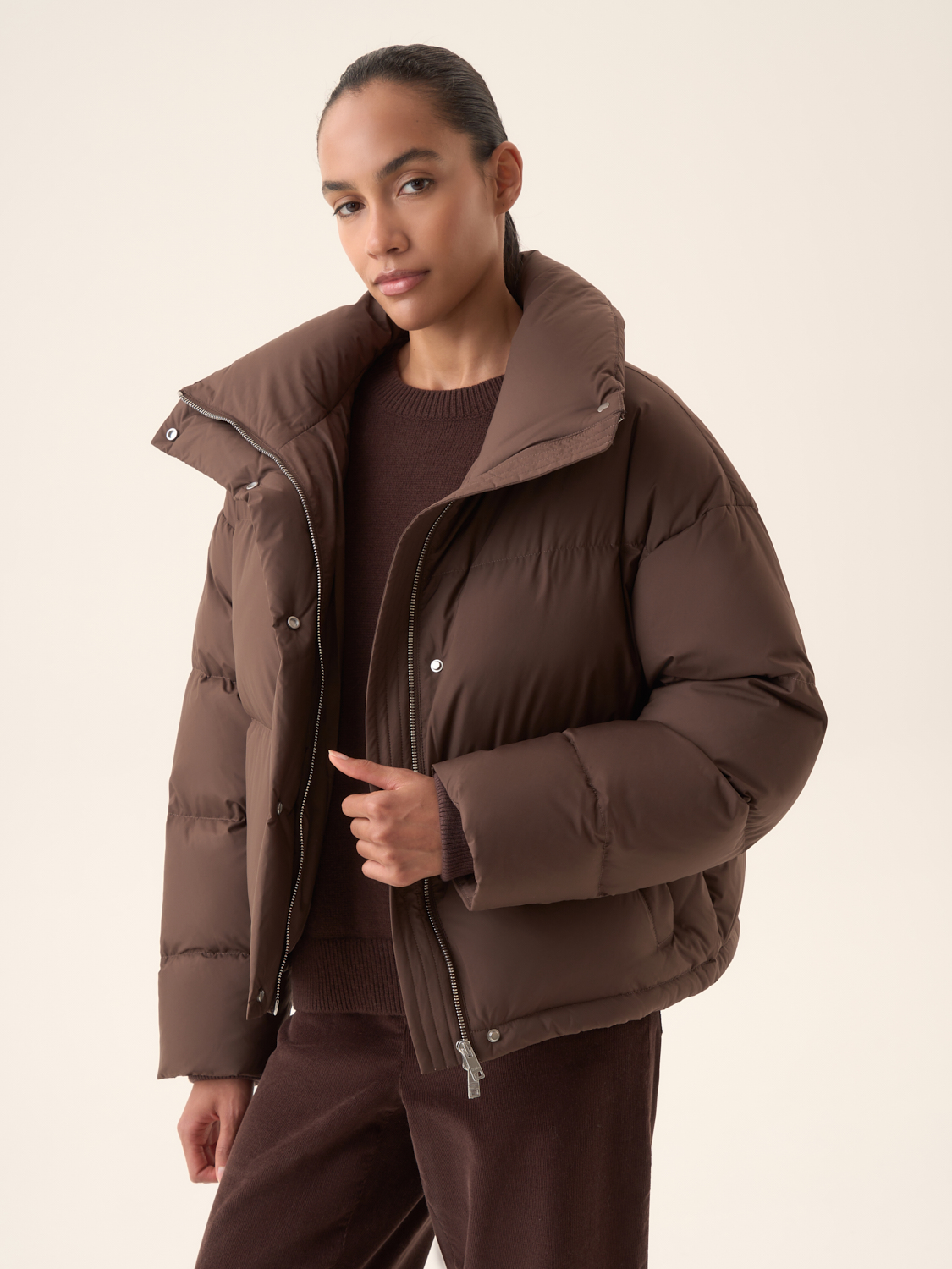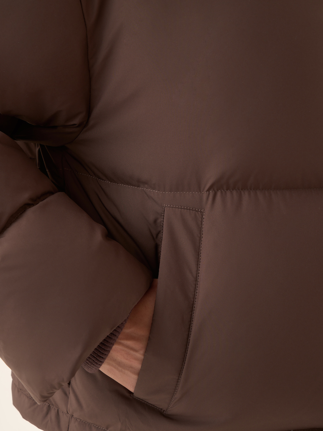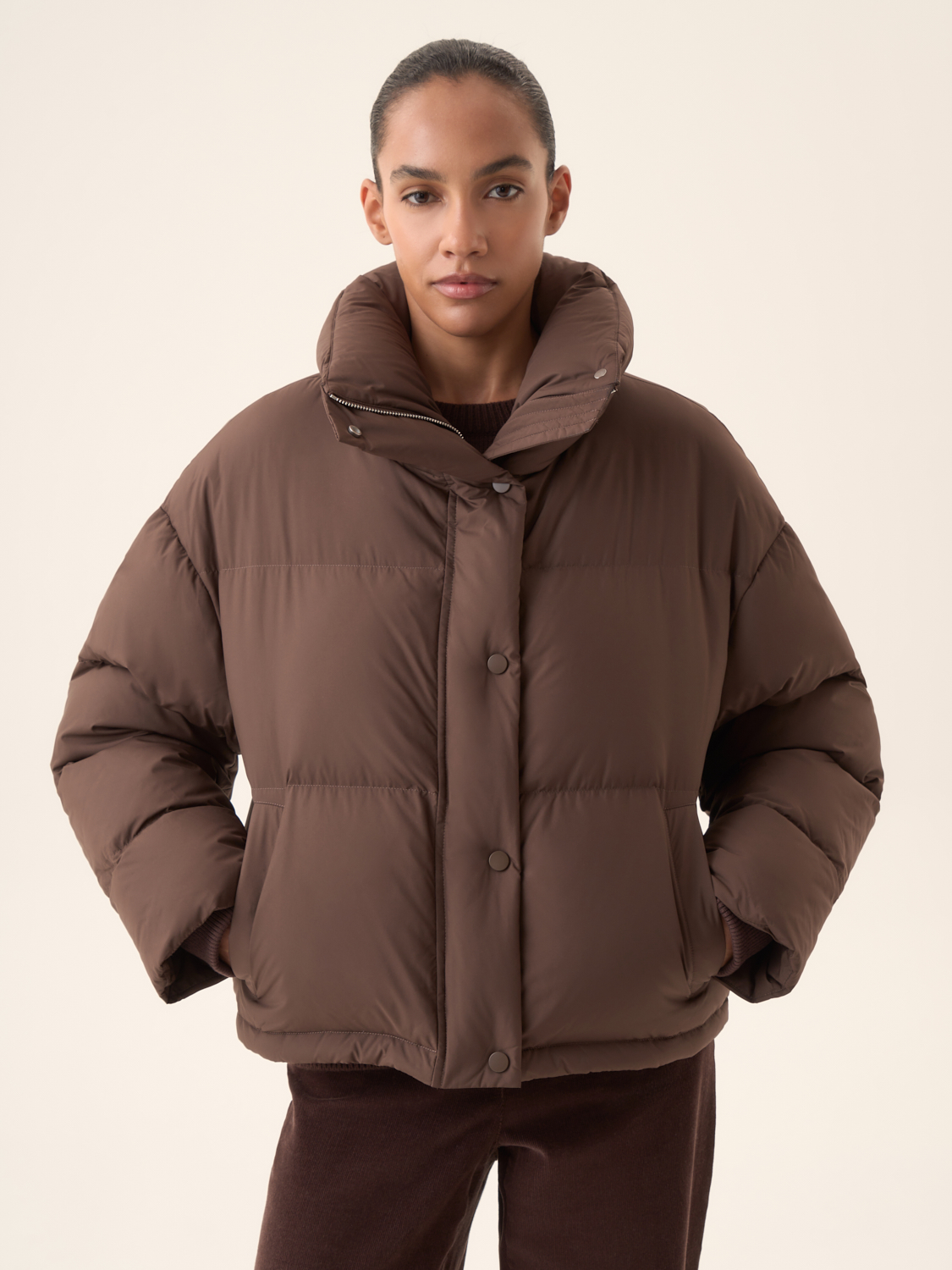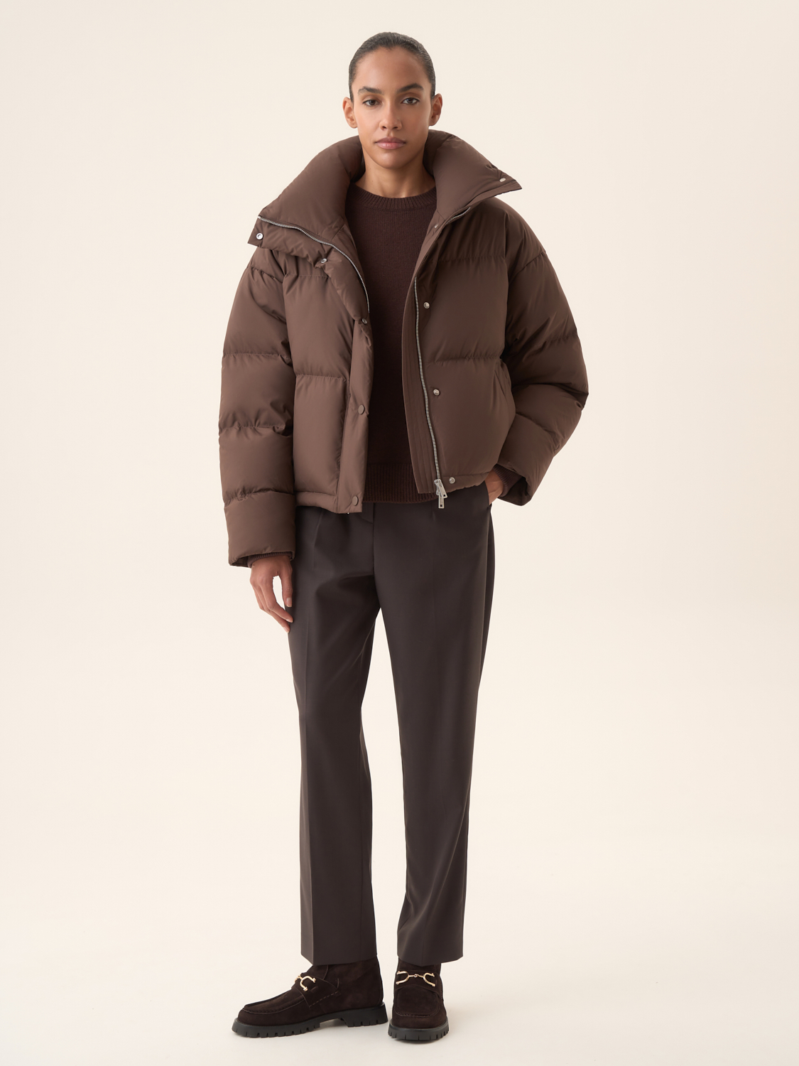Укороченная куртка с наполнителем из пуха и пера белой утки — идеальный выбор для динамичных зимних дней. Легкая и теплая, она обеспечивает комфорт даже в холодную погоду. Стильный крой подчеркивает силуэт и добавляет современную нотку в образ, а минималистичный дизайн делает куртку универсальной для различных сочетаний. Носите ее как с джинсами и трикотажем для повседневного стиля, так и с более элегантными вещами — эта модель легко подстроится под ваше настроение и обстановку, оставаясь верным спутником в прохладные дни.