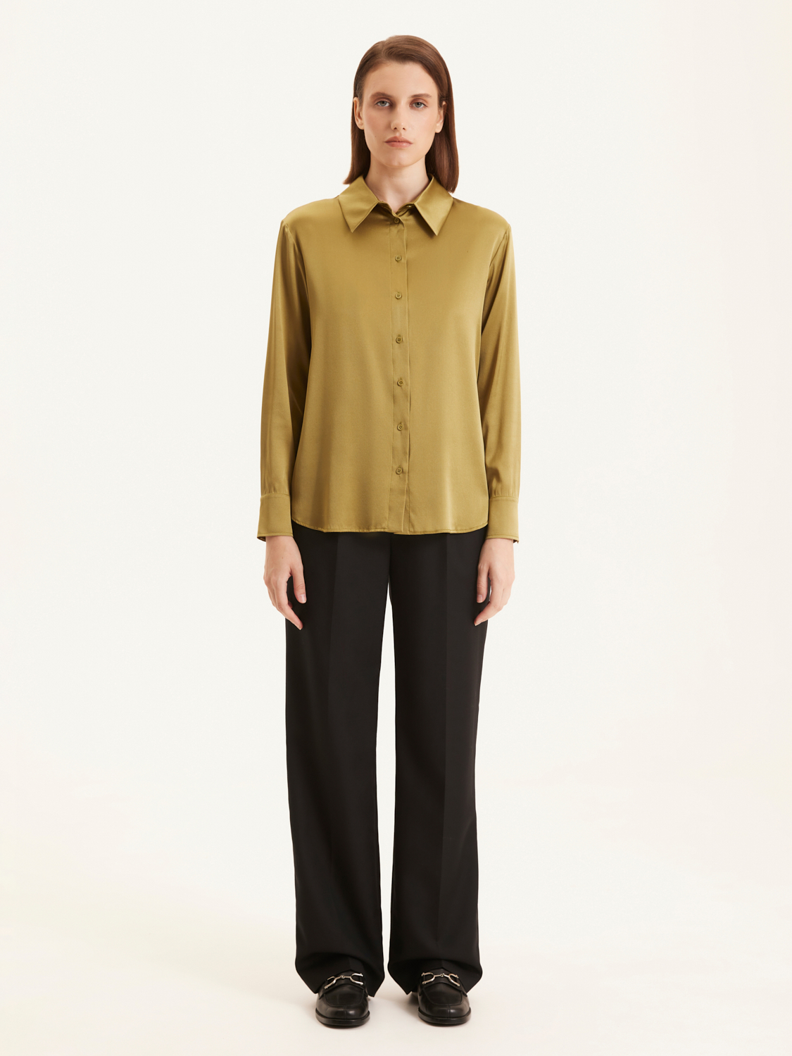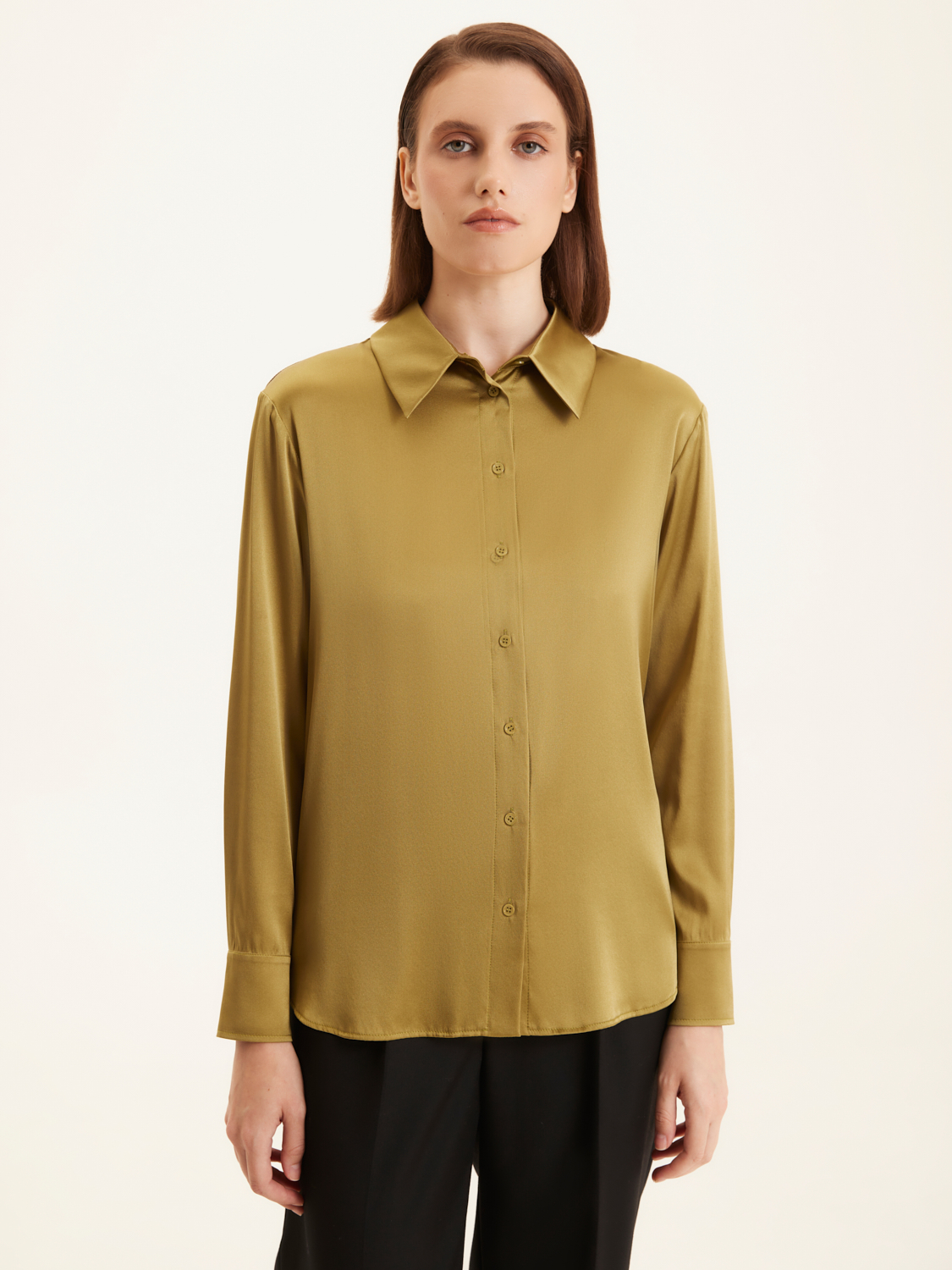 Эта шелковая рубашка — идеальное сочетание стиля и комфорта. Выполненная из высококачественного натурального шелка, она обладает мягкой текстурой и легким блеском, что придает образу изысканность. Классический крой и длинные рукава обеспечивают универсальность, позволяя легко сочетать рубашку с различными элементами гардероба, будь то брюки или джинсы. Яркий цвет добавляет свежий акцент образу, делая эту модель отличным выбором как для повседневных выходов, так и для более формальных мероприятий.