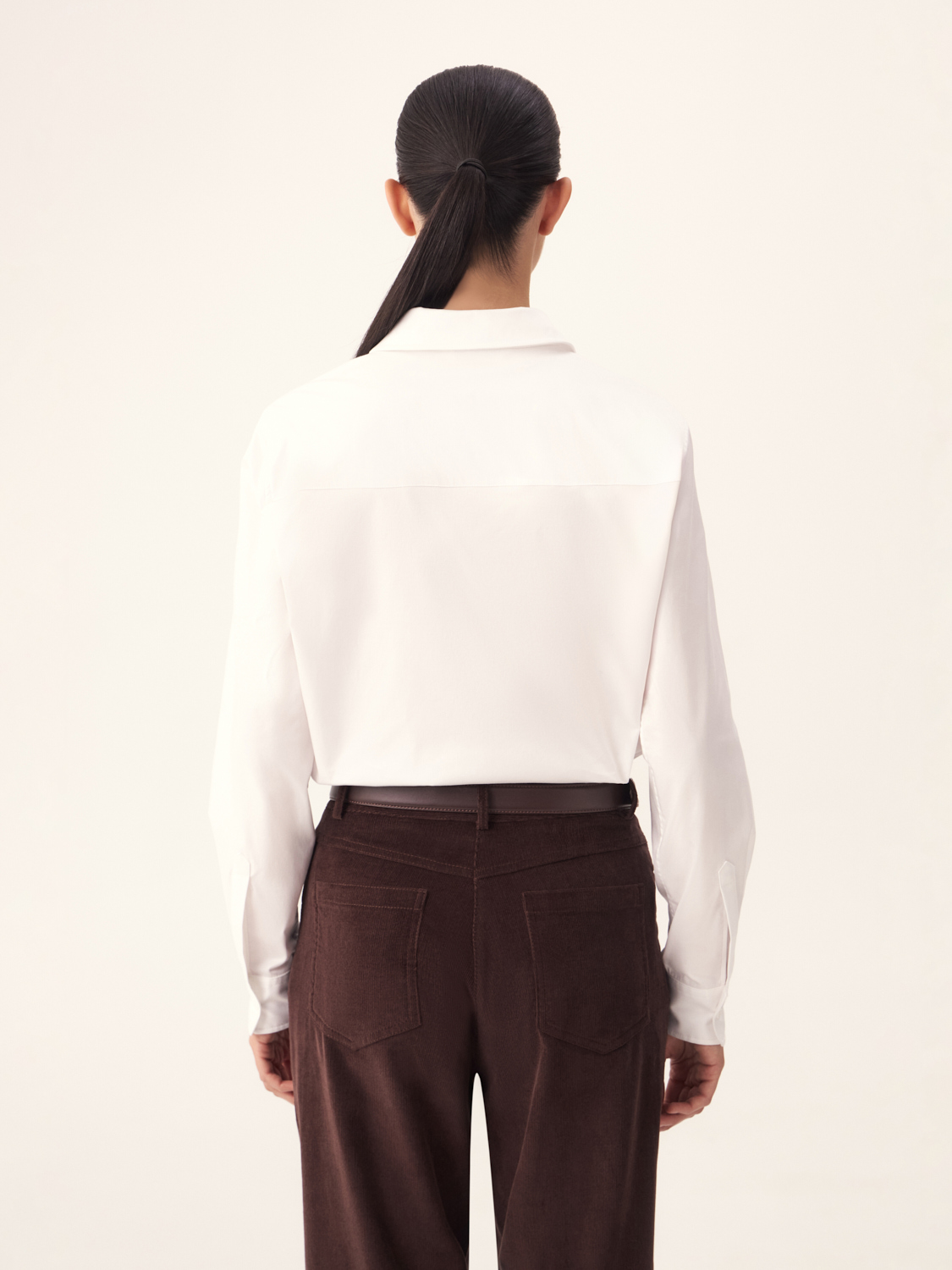 Оверсайз рубашка из хлопка воплощает в себе лаконичность и строгость классического стиля. Минималистичный, но изысканный дизайн с прямыми линиями подчеркивает вашу уверенность и создает сдержанный образ. Мягкий и качественный хлопок обеспечивает комфорт на весь день, а свободный крой позволяет чувствовать себя непринужденно в любой ситуации. Эта рубашка легко впишется в любой гардероб, идеально сочетаясь как с деловыми брюками, так и с джинсами, создавая стильные образы и непринужденные аутфиты на каждый день. На модели размер S.