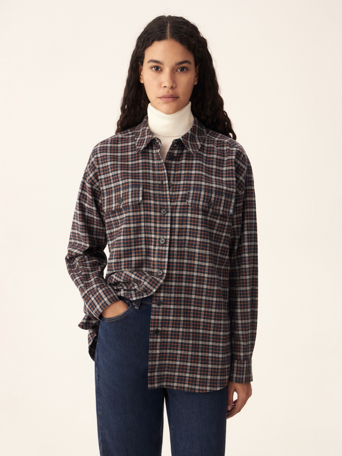 Эта рубашка в клетку выполнена из мягкого, дышащего хлопка, который дарит комфорт в течение всего дня. Прямой крой обеспечивает свободу движений, а классические накладные карманы на груди придают модели легкую нотку утилитарности. Универсальная клетчатая расцветка в сочетании с лаконичным дизайном делает рубашку идеальной как для повседневных образов, так и для создания более сдержанных комплектов. Ее можно носить как с джинсами для расслабленного стиля, так и с брюками для более формального аутфита. Отличный выбор для межсезонья, когда хочется сочетать уют и стиль. Параметры модели: рост 174 см, размер S.