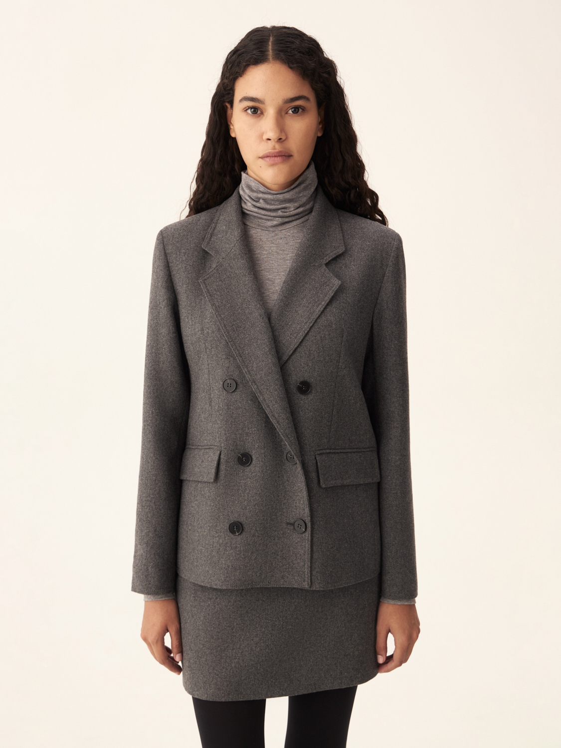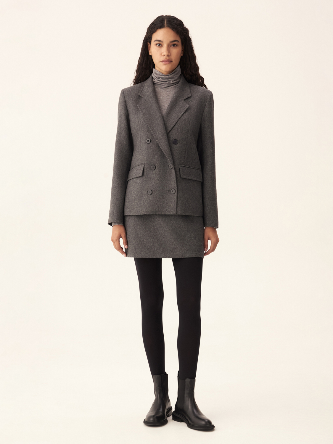 Шерстяной жакет станет базовым элементом вашего осеннего гардероба, подчеркивая вашу уверенность и безупречный вкус. Лаконичный крой и прямые линии создают строгий, но элегантный образ, который идеально подходит для деловых встреч и повседневных выходов. Двубортная застежка подчеркивает талию и придает жакету структурированность, а аккуратные лацканы и прорезные карманы с клапанами – изысканности. Жакет легко комбинируется с юбками и брюками, создавая гармоничные и утонченные образы для любого случая. На модели размер S.