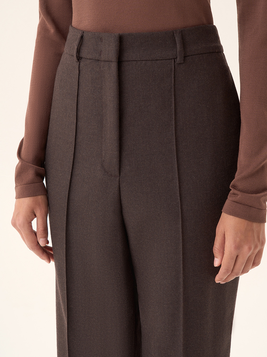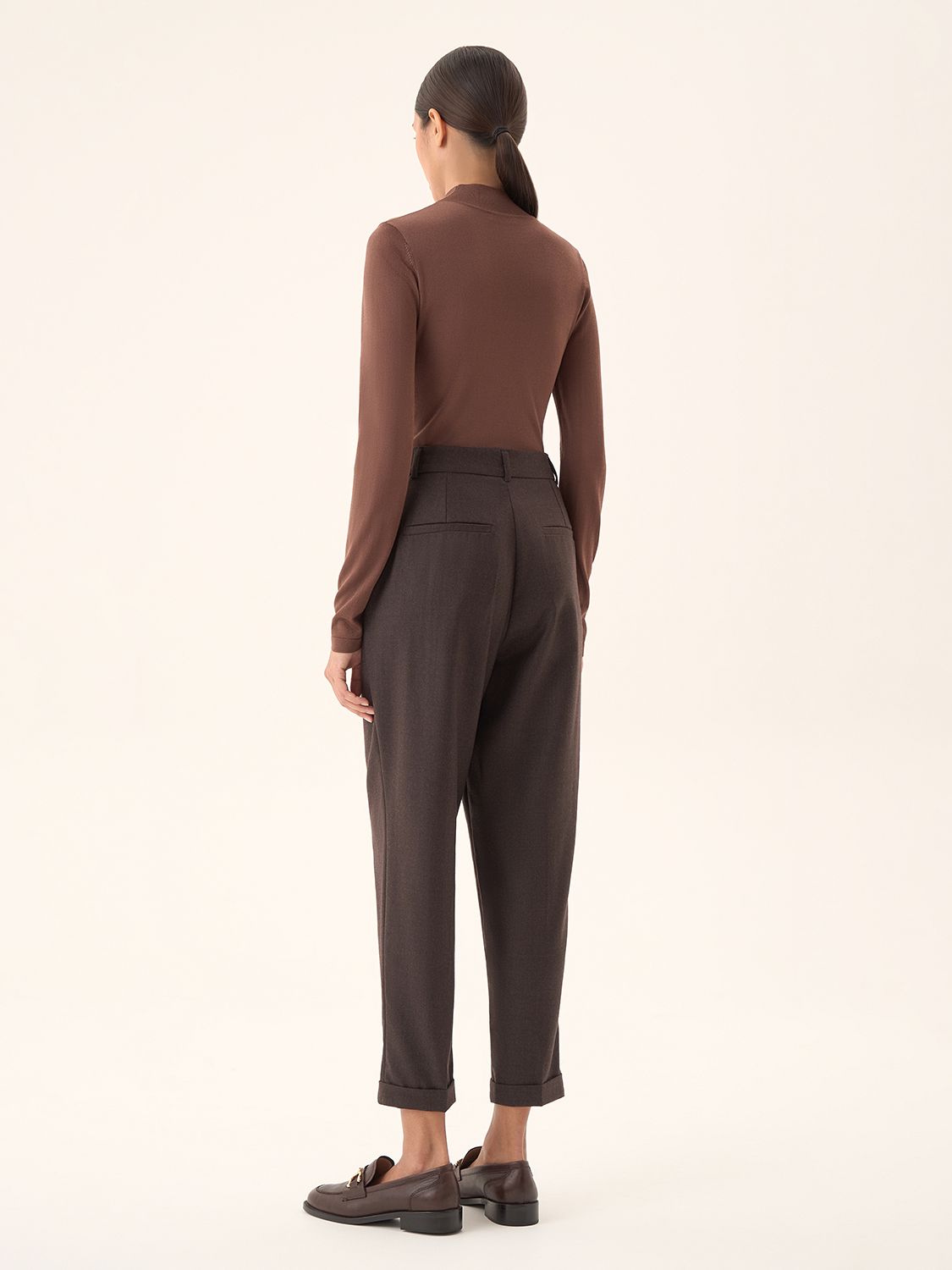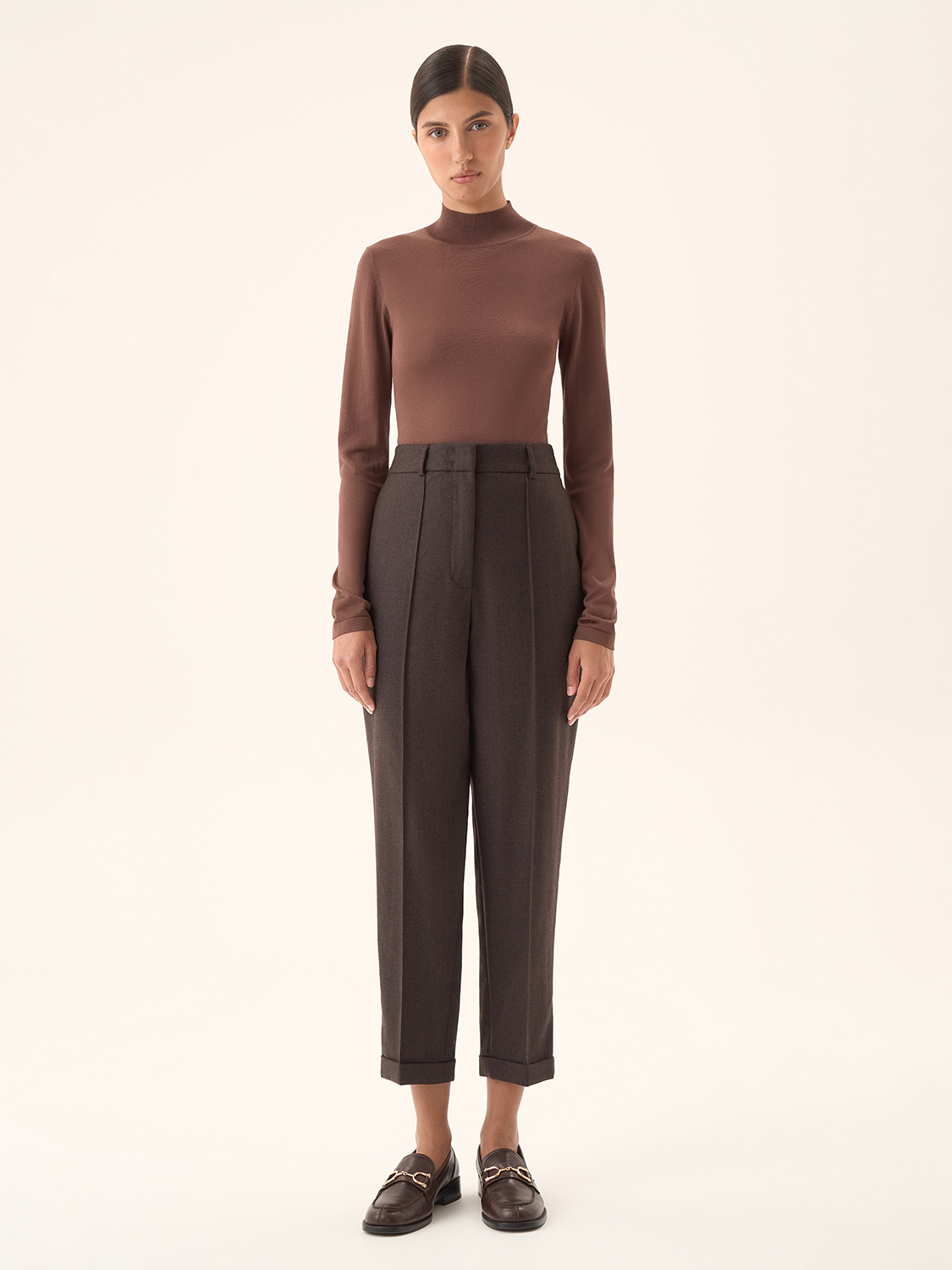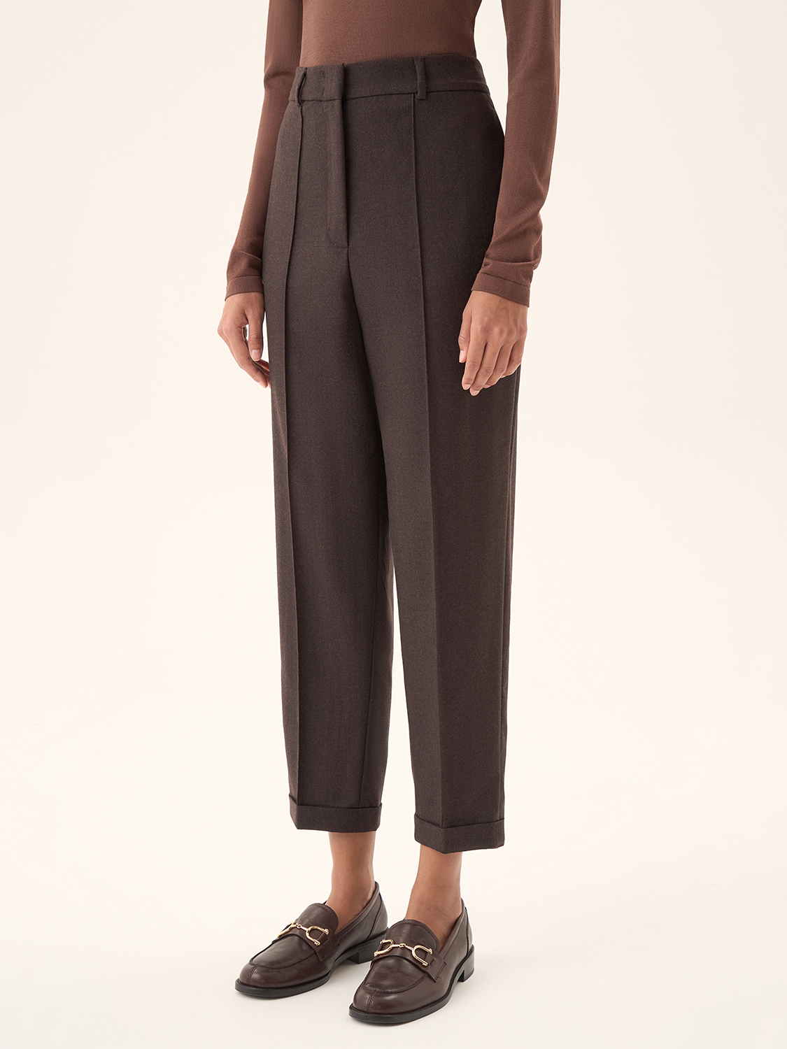 Костюмные брюки из шерсти объединяют классический стиль и современный комфорт. Выполненные из высококачественной шерсти, они обеспечивают тепло и приятные ощущения при носке, делая их идеальными для прохладной погоды. Свободный крой и элегантные стрелки создают утонченный силуэт, который легко сочетать с различными верхами — от классических рубашек до уютных свитеров. Брюки подойдут как для офисных луков, так и для вечерних мероприятий, добавляя вашему образу изысканности и уверенности.