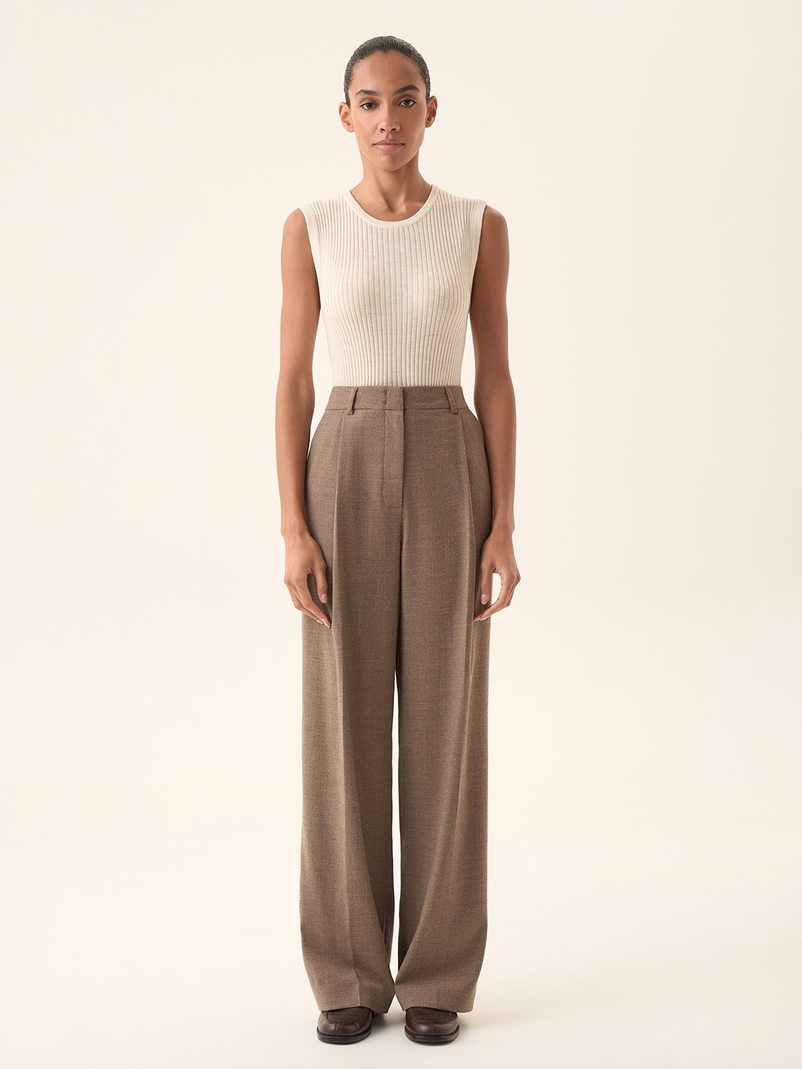 Брюки прямого кроя — это воплощение элегантности и практичности в одном изделии. Выполненные из высококачественной ткани, они идеально садятся по фигуре, создавая лаконичный силуэт. Высокая талия добавляет утонченности образу, делая их идеальным выбором как для офиса, так и для повседневных прогулок. Эти брюки легко комбинируются с любыми элементами гардероба, подчеркивая ваш стиль и уверенность.