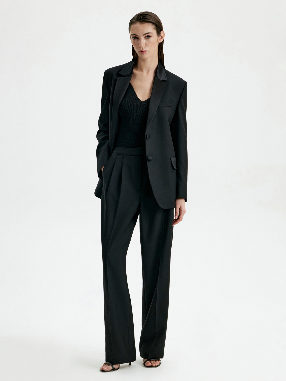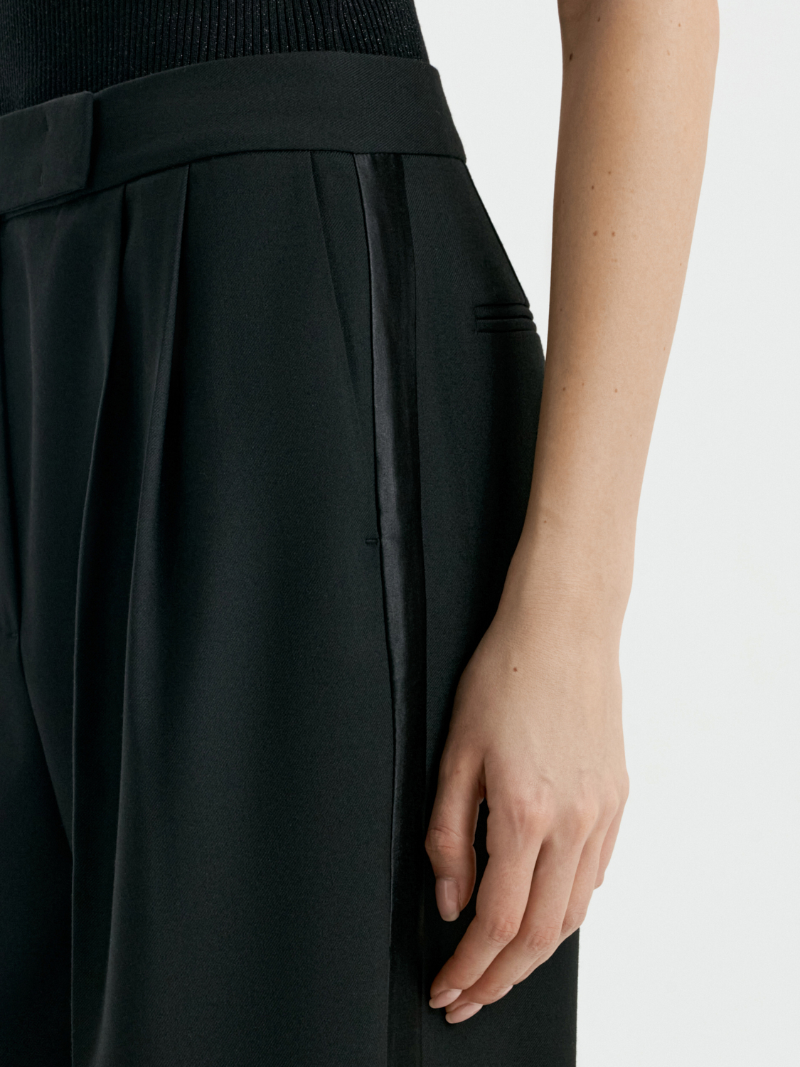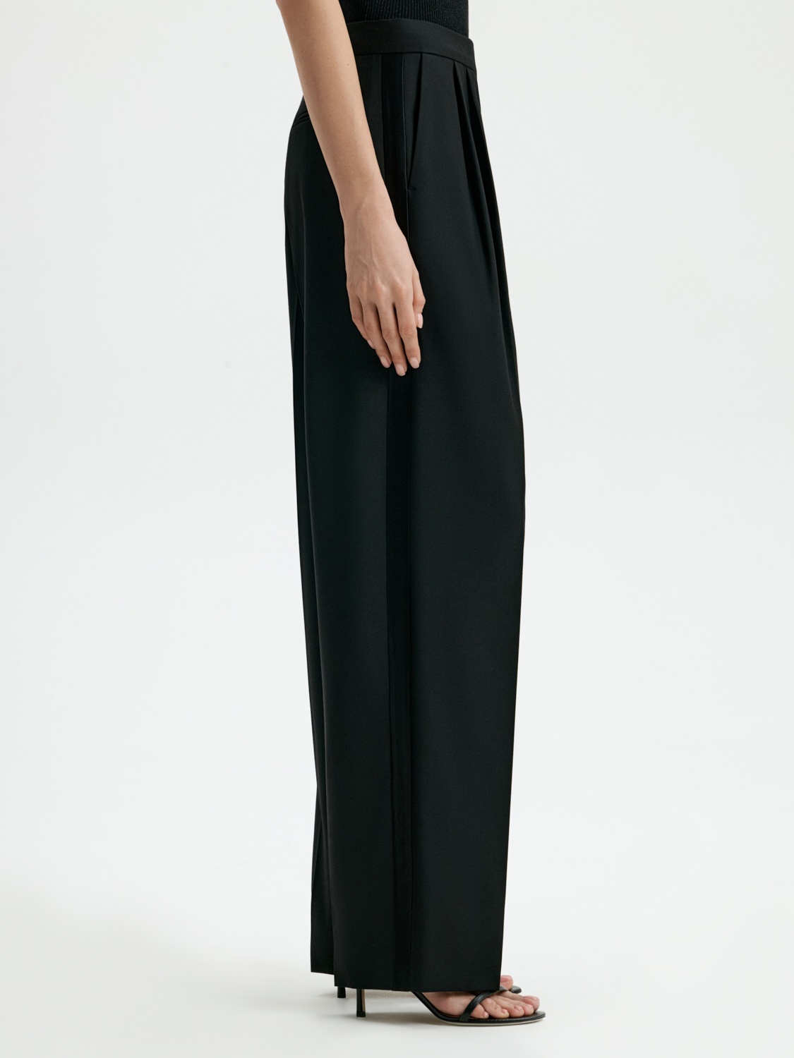 Благодаря натуральному составу, материал обеспечивает тепло и комфорт, делая эту модель идеальной для прохладных дней. Защипы у пояса добавляют выразительности и помогают создать аккуратный, собранный силуэт. Свободный крой гарантирует удобство в движении, а универсальный дизайн позволяет легко комбинировать брюки с различными топами, рубашками или жакетами. Эта модель станет стильным решением как для офисных будней, так и для повседневных образов.