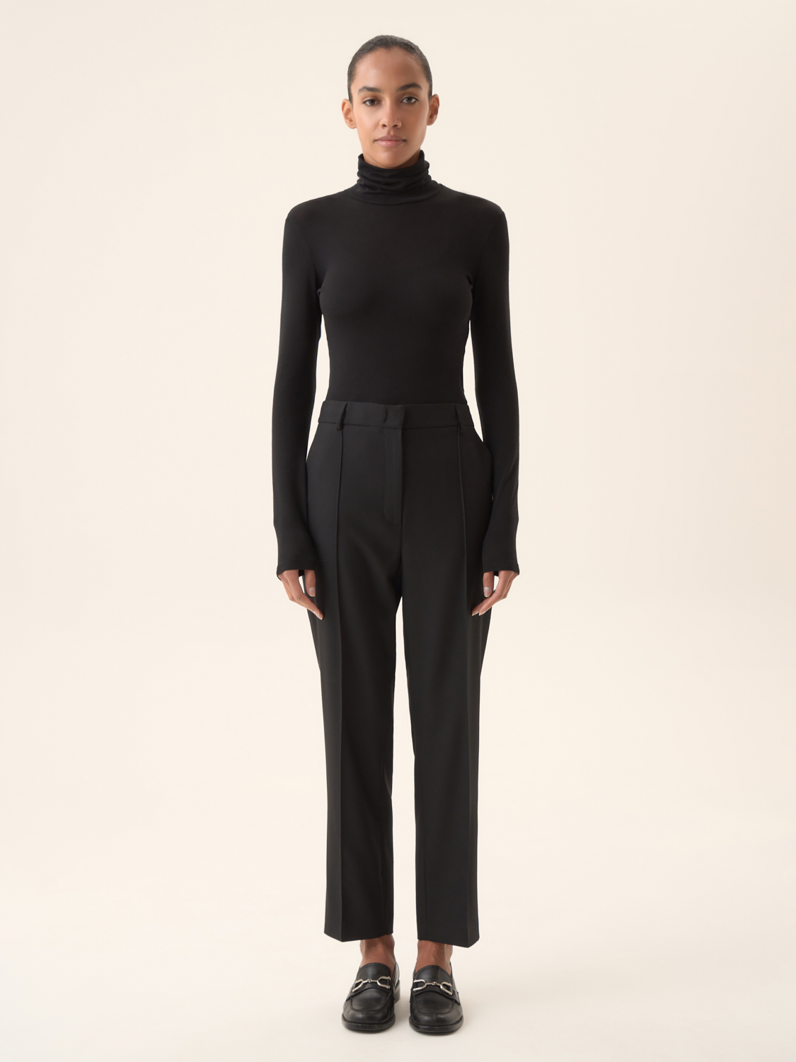 Эти стильные брюки со стрелками станут незаменимым элементом вашего базового гардероба. Изготовленные из высококачественного материала, они обеспечивают комфорт и легкость в носке. Прямой крой и четкие стрелки подчеркивают фигуру, придавая образу утонченность. Брюки дополнены удобным поясом, который позволяет регулировать посадку, а два задних кармана добавляют практичности. Легко комбинируются с классическими блузами и обувью на каблуке, эти брюки идеально подходят как для офисных луков, так и для вечерних мероприятий.