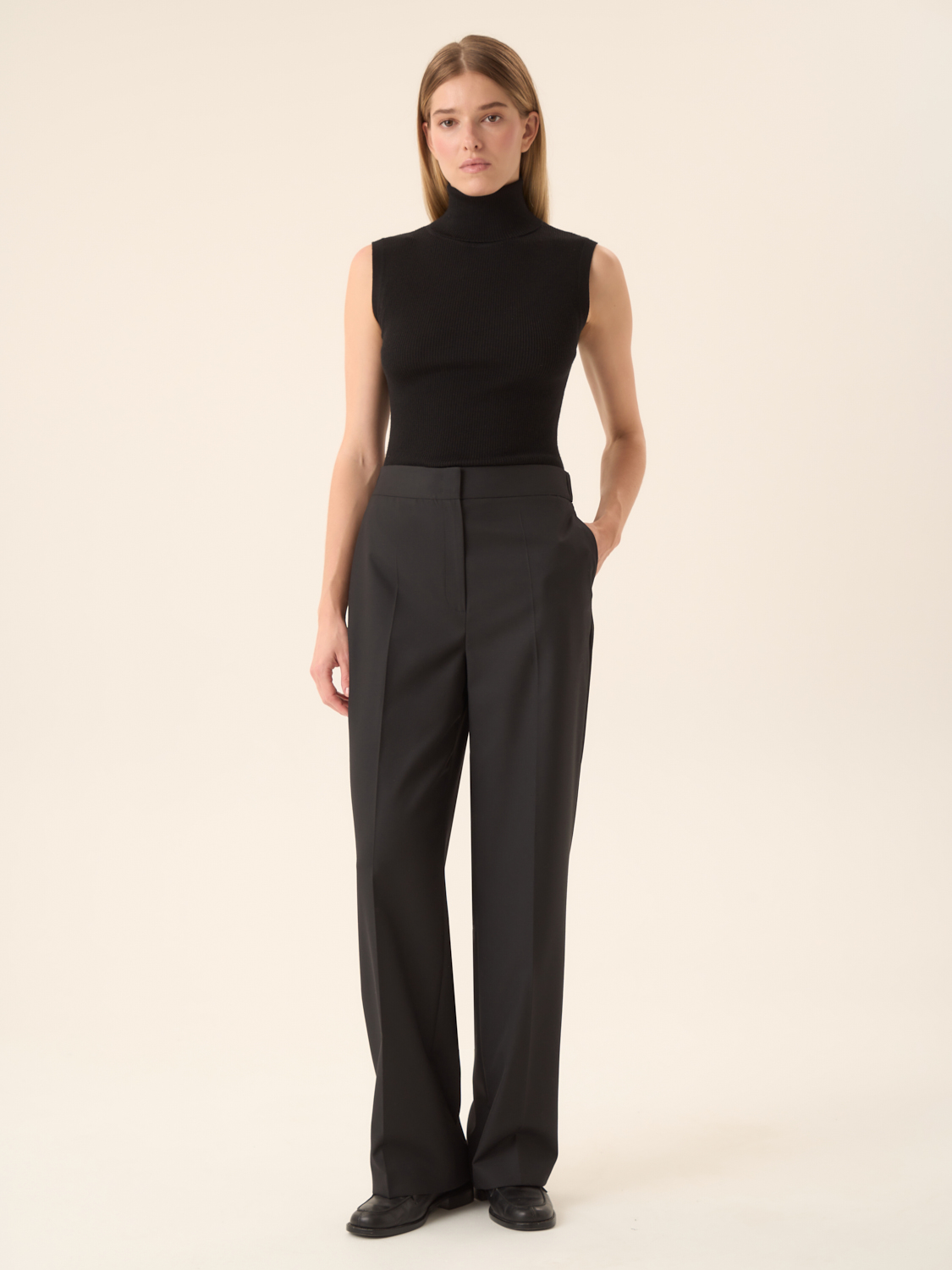 Брюки прямого кроя со стрелками — идеальное сочетание элегантности и повседневного комфорта. Эти брюки выполнены из качественного материала, что обеспечивает удобство и долговечность в носке. Прямой крой и четкие стрелки придают образу строгую утонченность, делая их универсальным элементом для офисного и повседневного стиля. Сочетайте их с блузками или свитерами для создания стильных образов, которые подчеркнут вашу уверенность и изысканный вкус.