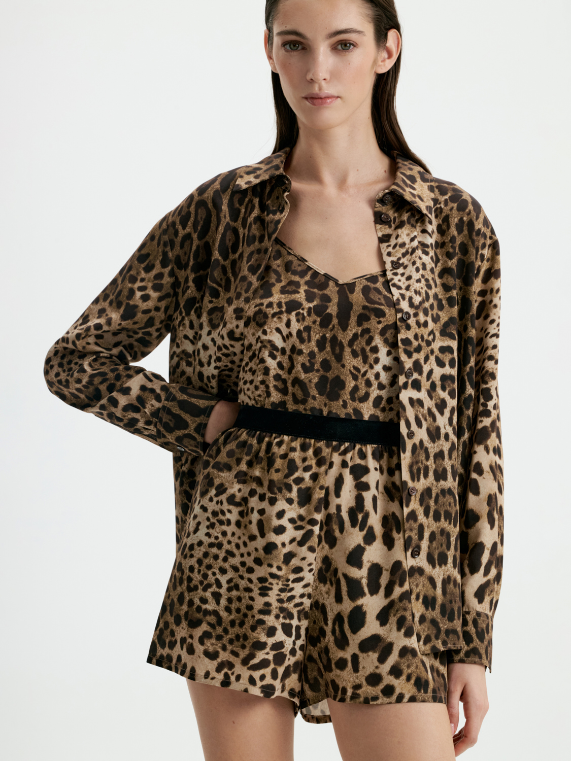 Шорты из шелка с леопардовым принтом — стильный акцент, который сочетает комфорт и выразительность. Легкий шелк обеспечивает свободу движений и приятное ощущение на коже, а дерзкий принт добавляет яркости образу. Удобный крой делает шорты универсальным элементом гардероба: их можно носить с лаконичными топами, рубашками или жакетами, создавая как расслабленные, так и более элегантные сочетания. Эти шорты станут эффектным дополнением вашего стиля, подчеркивая вашу индивидуальность. На модели размер S. Параметры модели: рост 177, 80-60-90.
