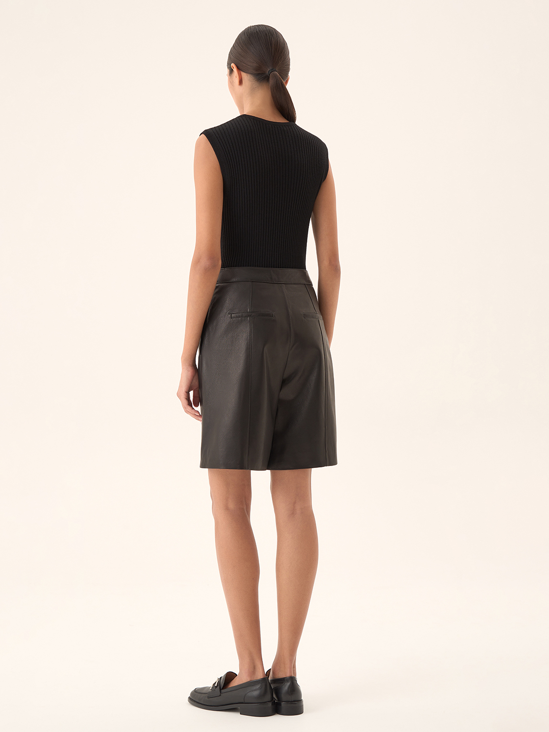 Шорты из натуральной кожи — смелый и стильный выбор для создания выразительного образа. Эти шорты с идеально сидящим кроем подчеркивают силуэт и обеспечивают максимальный комфорт благодаря мягкой коже высокого качества. Лаконичный дизайн и универсальный черный цвет позволяют сочетать их с различными топами и обувью, создавая как повседневные, так и более вечерние образы. Кожаные шорты идеально впишутся в гардероб, добавляя ему актуальности и элегантной дерзости.
