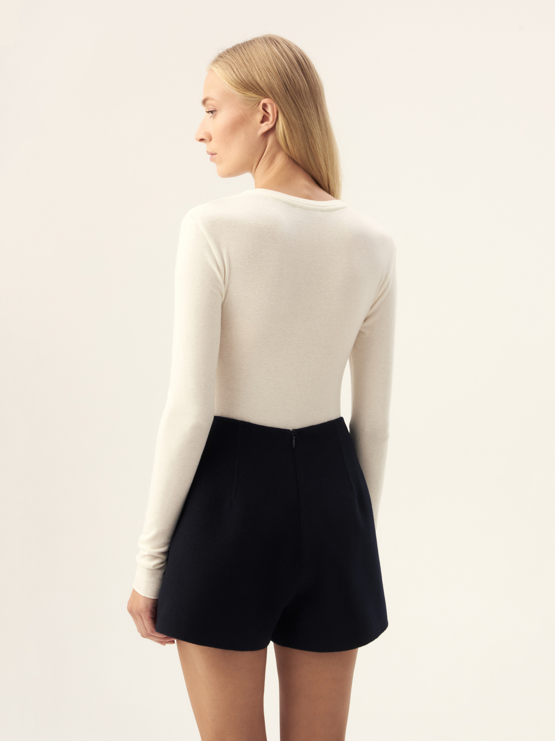 Эти шорты из шерсти австралийского мериноса — идеальный выбор для тех, кто ценит сочетание роскоши и комфорта. Мягкий, но плотный материал обеспечивает тепло, делая их подходящими для межсезонья и прохладных дней. Лаконичный крой и минималистичный дизайн придают шортам универсальность — их можно носить как в повседневной жизни, так и на более официальных мероприятиях. Благодаря высокой посадке и четким линиям, они подчеркивают талию и создают стройный силуэт. Шорты легко комбинируются с жакетами или водолазками для создания стильного многослойного образа. Параметры модели: рост 174 см, размер S.