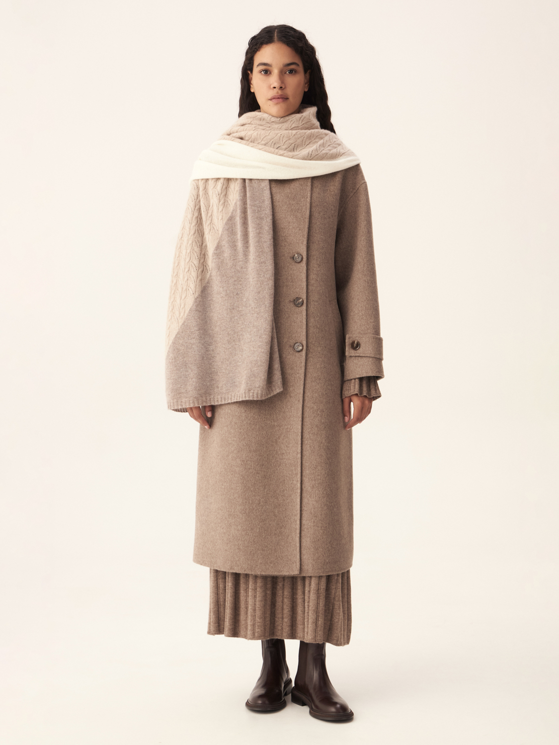 Шарф из кашемира с узорчатой вязкой — это сочетание уюта и изысканности. Мягкий, легкий и невероятно приятный на ощупь, этот шарф станет незаменимым аксессуаром в вашем гардеробе. Благодаря узорчатой текстуре он добавляет образу нотку утонченности и стиля. Идеальный выбор для прохладных дней, шарф обеспечивает тепло и комфорт, сохраняя при этом элегантный внешний вид.
