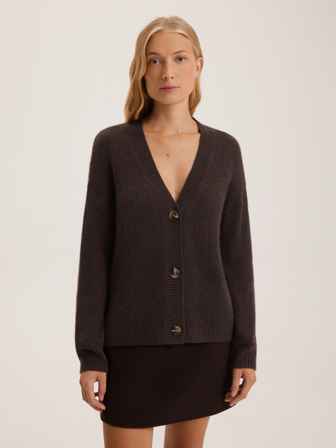 Кардиган из кашемира выполнен в классическом стиле с V-образным вырезом и застежкой на крупные пуговицы. Этот стильный и уютный кардиган обладает мягкой и нежной текстурой, которая дарит комфорт и тепло в прохладные дни. Длинные рукава и свободный крой обеспечивают свободу движений и удобство в повседневной носке. Кардиган легко комбинируется с различными предметами гардероба, такими как джинсы, брюки и юбки, добавляя нотку элегантности любому образу. На модели размер S. Параметры модели: рост 176, 85-60-89.