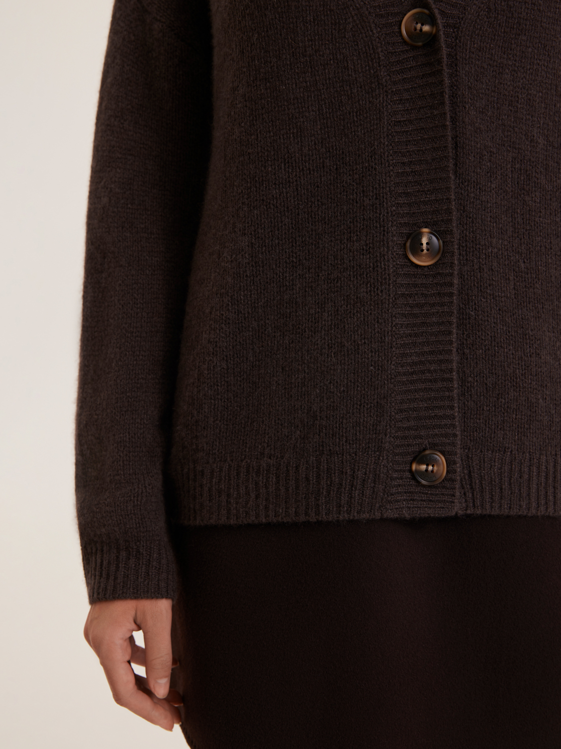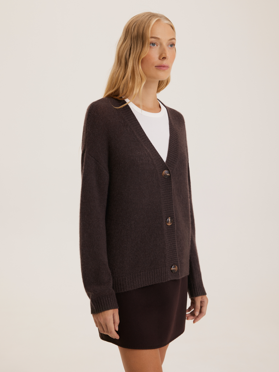 Кардиган из кашемира выполнен в классическом стиле с V-образным вырезом и застежкой на крупные пуговицы. Этот стильный и уютный кардиган обладает мягкой и нежной текстурой, которая дарит комфорт и тепло в прохладные дни. Длинные рукава и свободный крой обеспечивают свободу движений и удобство в повседневной носке. Кардиган легко комбинируется с различными предметами гардероба, такими как джинсы, брюки и юбки, добавляя нотку элегантности любому образу. На модели размер S. Параметры модели: рост 176, 85-60-89.