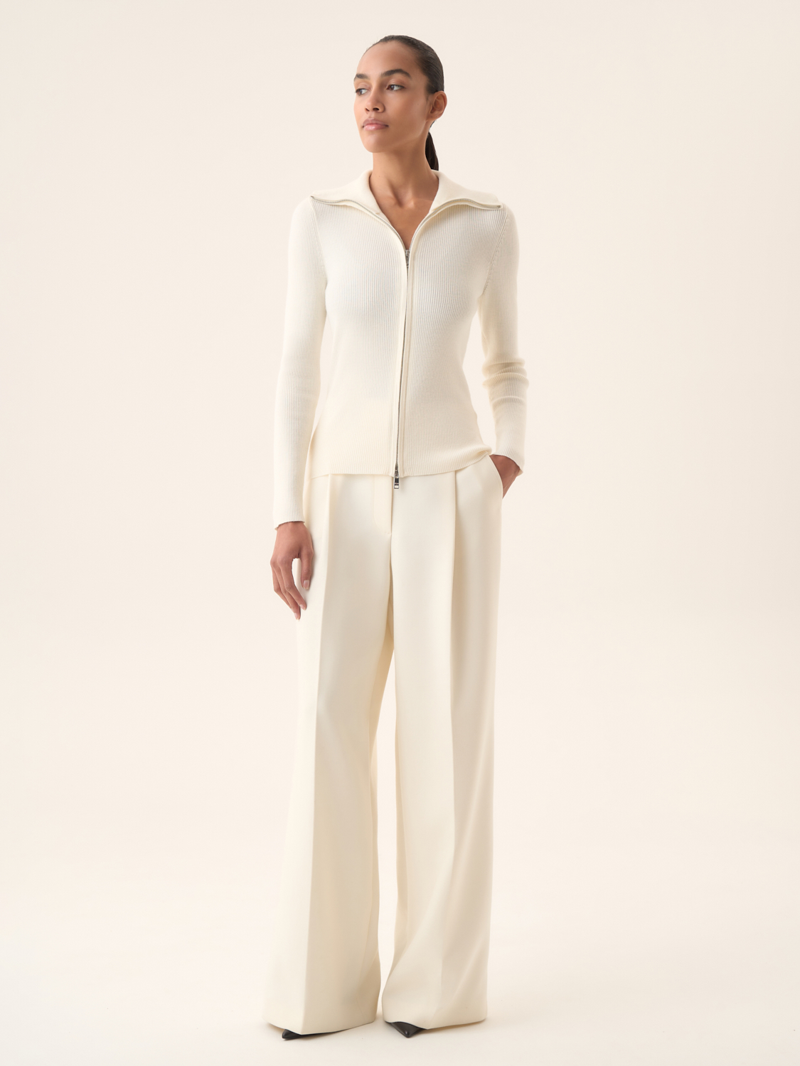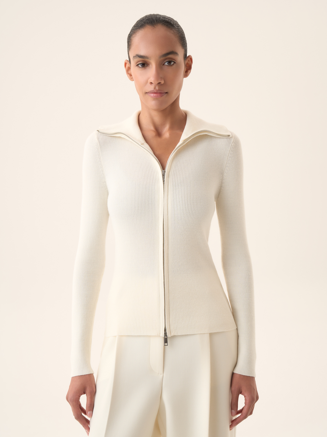 Кардиган из шерсти мериноса на молнии — это воплощение комфорта и элегантности в одном изделии. Облегающий силуэт мягко подчеркивает фигуру, создавая утонченный и изящный образ. Длинные рукава и высокий воротник добавляют кардигану функциональности, защищая от прохлады, а застежка на молнии позволяет регулировать глубину выреза в зависимости от предпочтений. Изделие выполнено из тонкой шерсти мериноса, которая отличается высокой степенью терморегуляции и мягкостью, обеспечивая комфорт в течение всего дня. Этот кардиган станет универсальным дополнением к любому гардеробу, легко сочетаясь с различными элементами одежды, от классических брюк до повседневных джинсов. На модели размер S. Параметры модели: рост рост 175, 84-59-91.