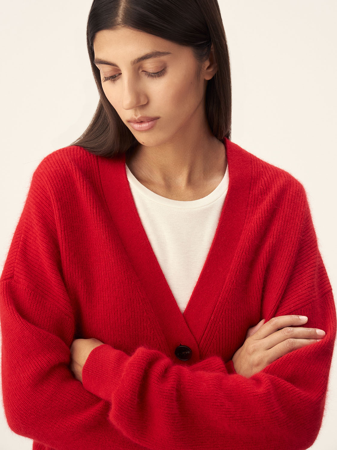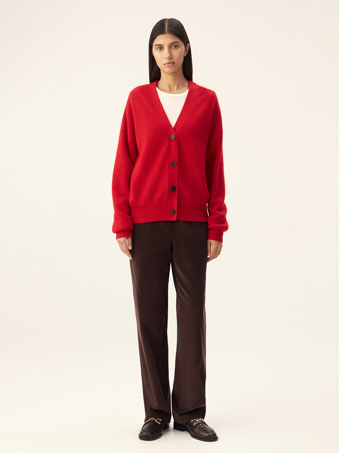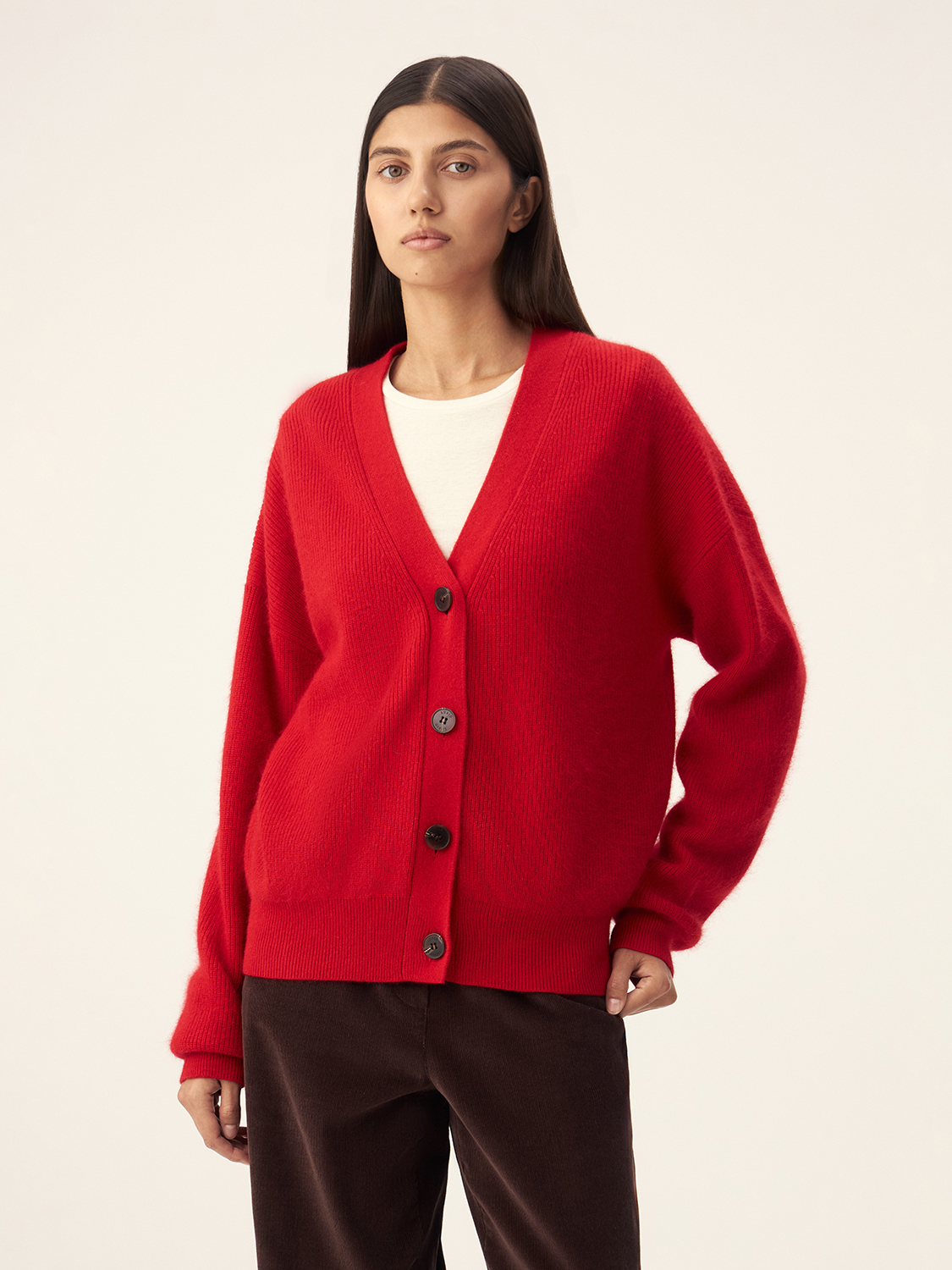 Кардиган с ангорой и шерстью мериноса — это воплощение уюта и стиля. Мягкая, приятная на ощупь ткань с добавлением ангоры и мериносовой шерсти обеспечивает тепло и комфорт, делая этот кардиган идеальным для прохладных дней. Свободный крой и классические пуговицы создают расслабленный, но одновременно элегантный образ. Кардиган легко комбинируется как с брюками, так и с юбками, создавая универсальные и стильные ансамбли для повседневного гардероба.