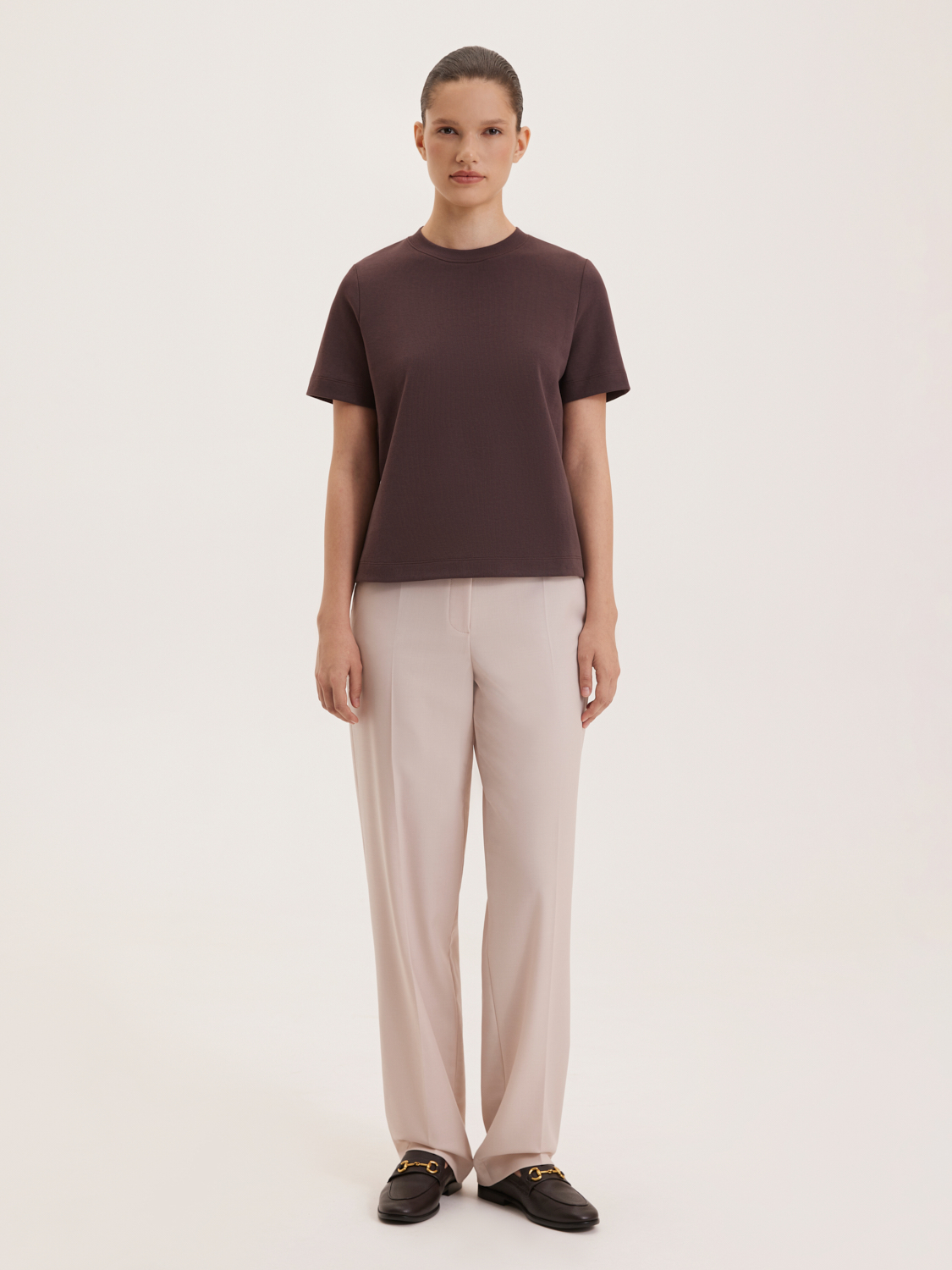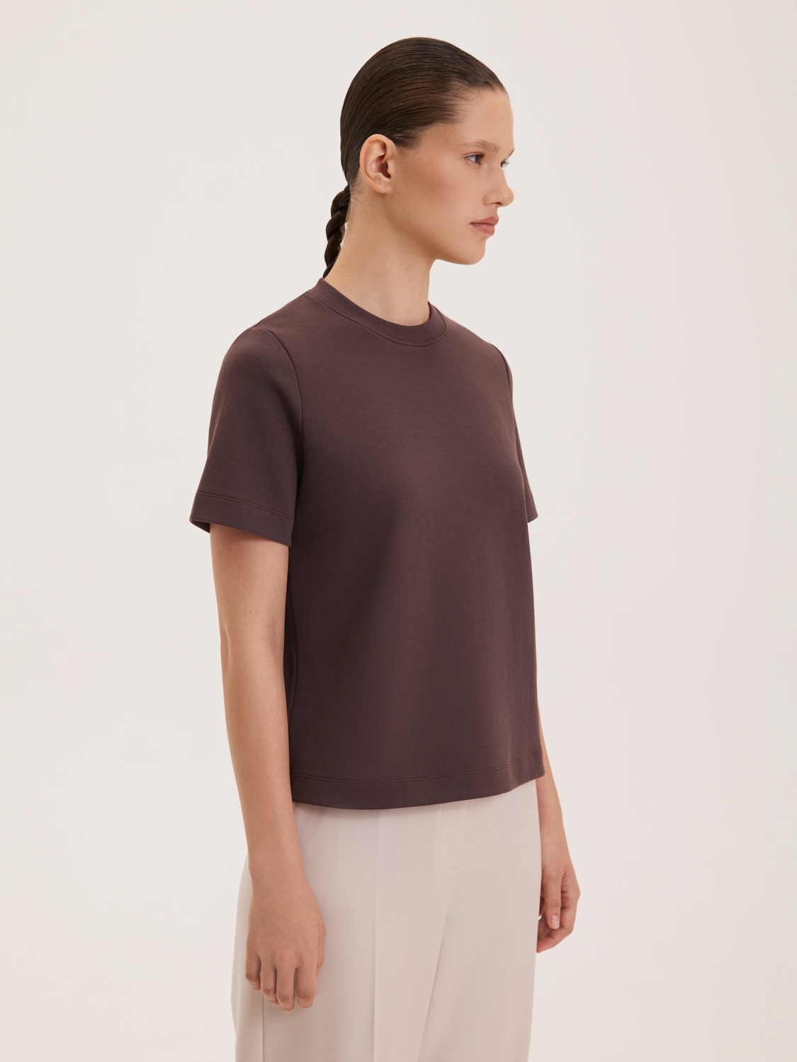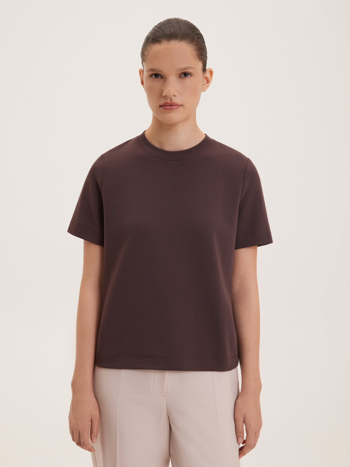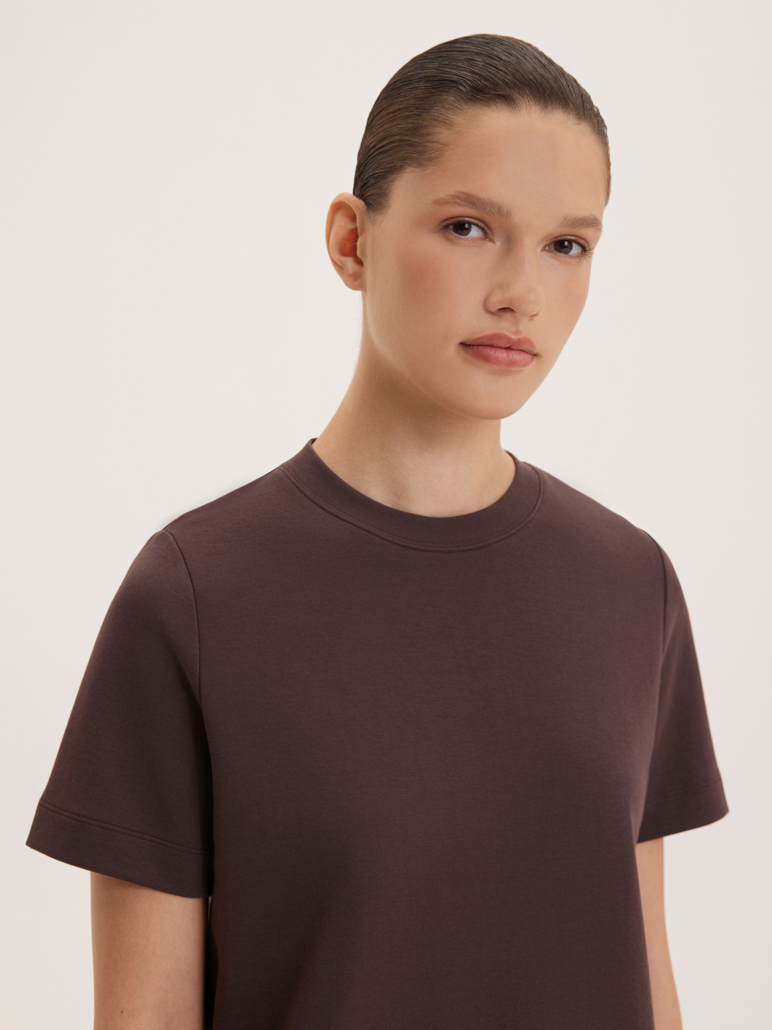 Базовая хлопковая футболка представлена в минималистичном стиле, идеально подходящем для повседневного гардероба. Изделие выполнено из высококачественного хлопка, обеспечивающего комфорт и долговечность. Прямой крой и короткие рукава делают эту футболку универсальным элементом, который легко сочетается как с джинсами, так и с брюками или юбками. Футболка органично комбинируется с любой одеждой, создавая стильные и практичные образы. На модели размер S. Параметры модели: рост 176, 85-60-89.
