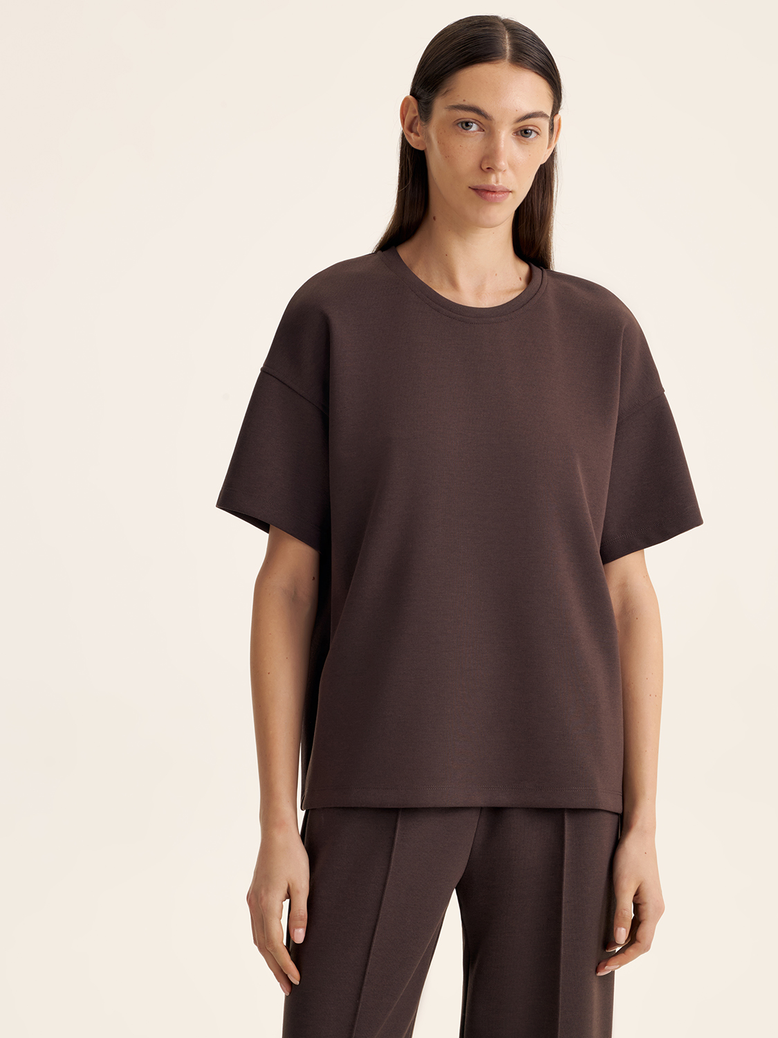 Футболка свободного кроя — это базовый элемент гардероба, который идеально подходит для комфортных и стильных повседневных образов. Ее мягкая ткань и свободный силуэт обеспечивают удобство и свободу движений. Легко сочетайте с джинсами, брюками или юбками, чтобы создать непринужденный, но продуманный look. Простой дизайн с утонченными деталями делает эту футболку универсальной для любого случая, даря вам комфорт и уверенность на каждый день.