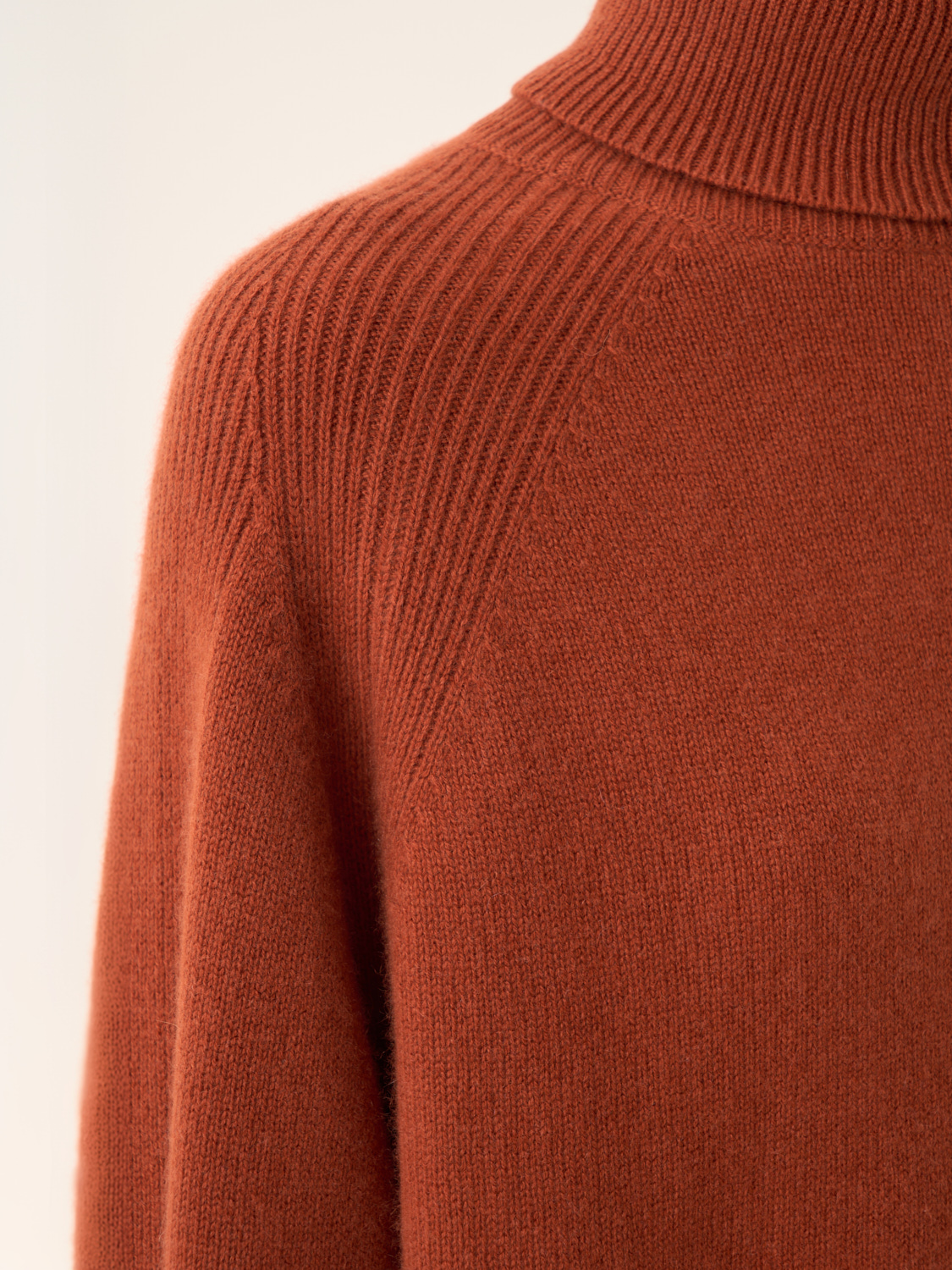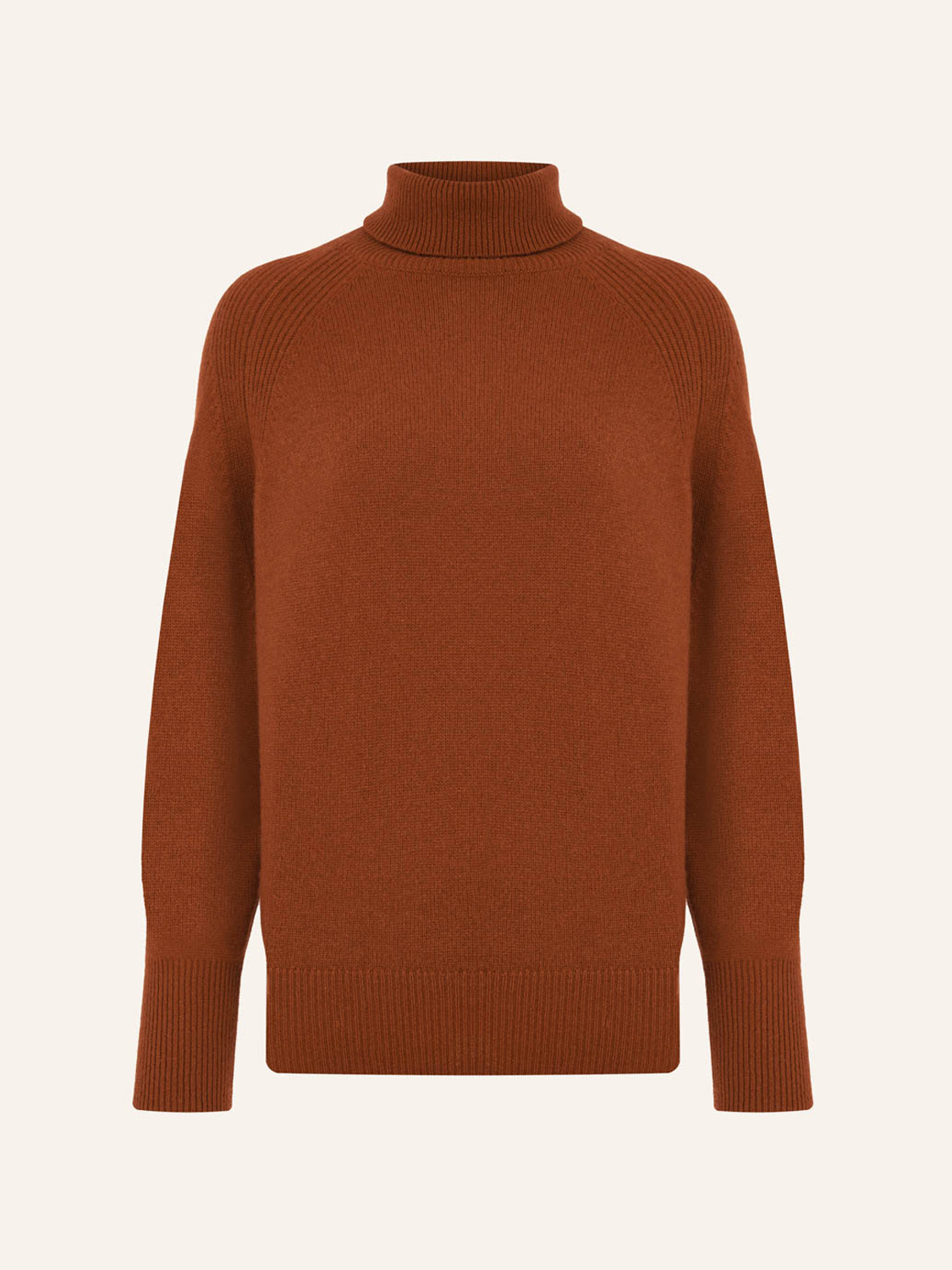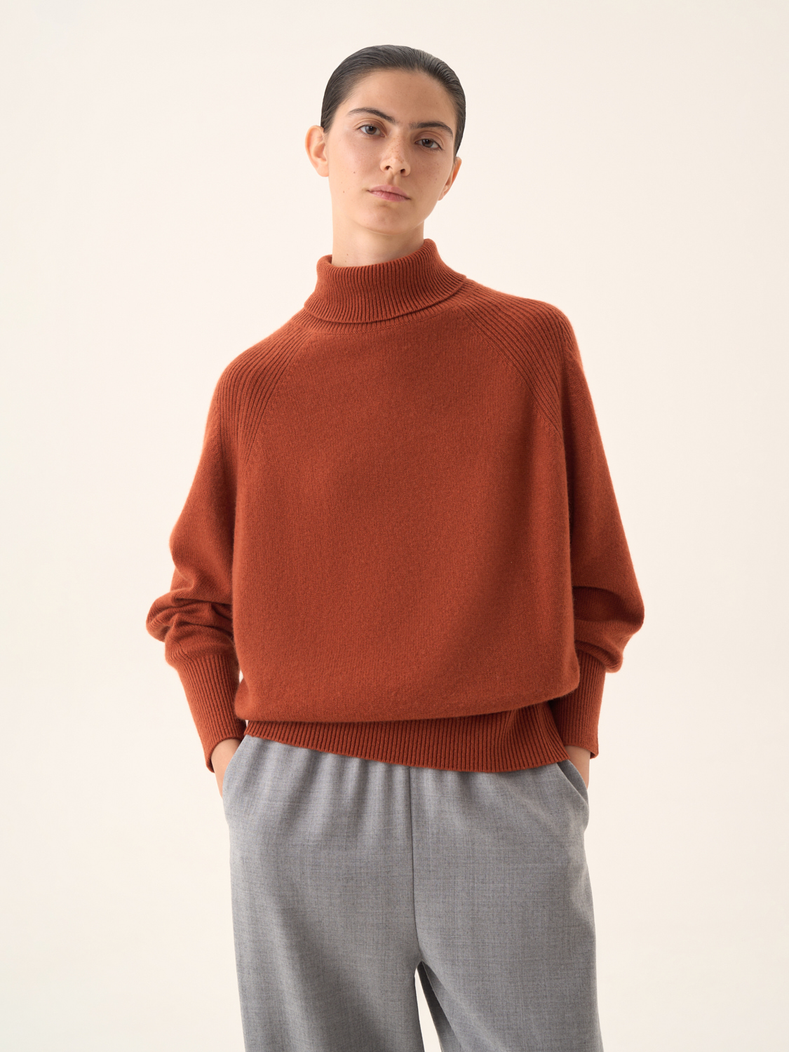 Джемпер свободного кроя из кашемира — воплощение стиля и комфорта. Мягкий и теплый, он идеально подходит для прохладной погоды. Свободный крой и слегка удлиненные рукава создают расслабленный силуэт, который остается элегантным и современным. Воротник-стойка добавляет дополнительный уровень комфорта и уюта, защищая от холодного ветра. Ребристая отделка на манжетах, подоле и воротнике подчеркивает минималистичный дизайн, делая этот джемпер универсальным элементом гардероба. Он легко комбинируется с различными стилями — от делового до повседневного. На модели размер S.