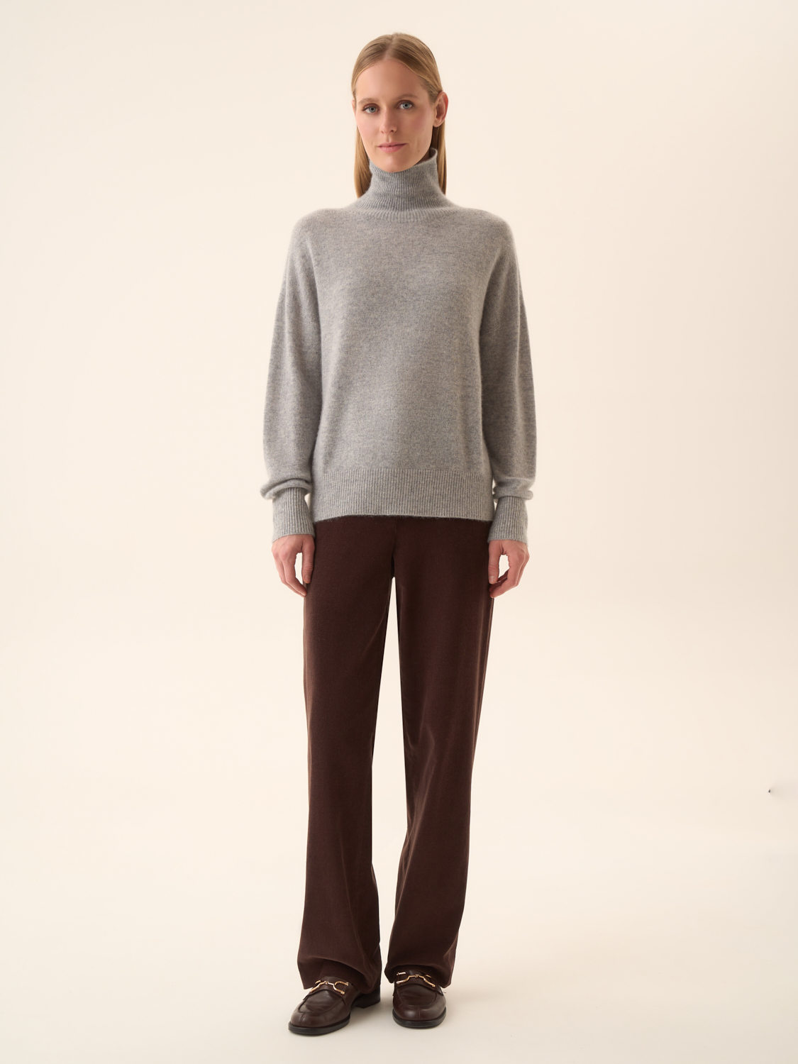 Этот джемпер из шерсти мериноса — воплощение уюта и элегантности. Натуральный материал обладает исключительной мягкостью, сохраняет тепло и обеспечивает комфорт на протяжении всего дня. Лаконичный крой и спокойный оттенок делают джемпер универсальной основой гардероба, легко сочетающейся с юбками, брюками или джинсами. Идеальный выбор для создания изысканных повседневных или деловых образов с акцентом на естественность и утонченность.