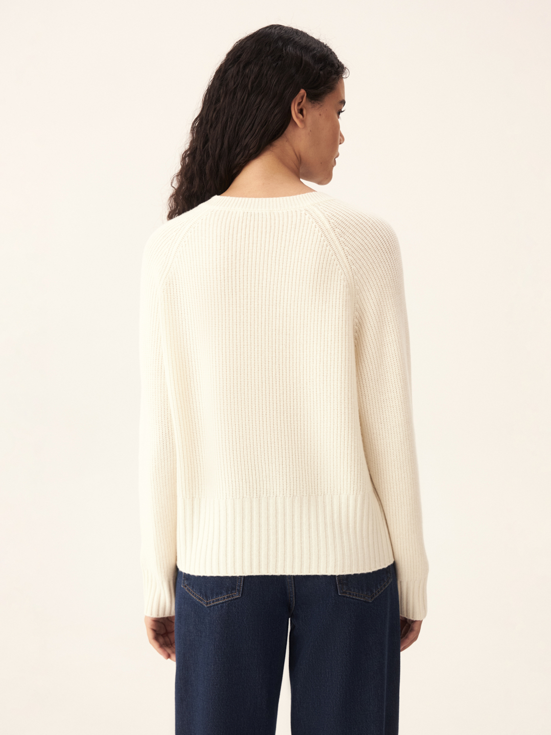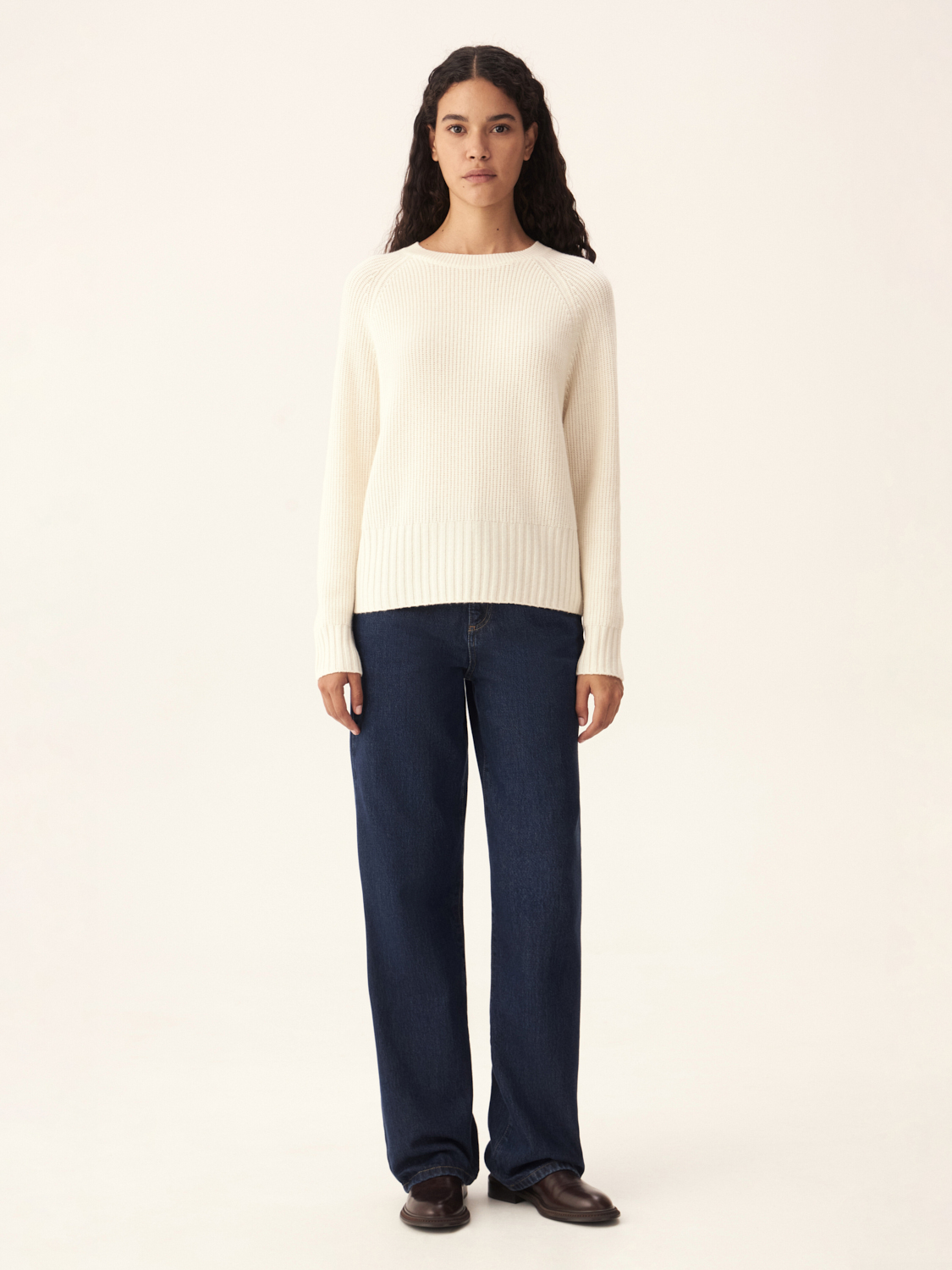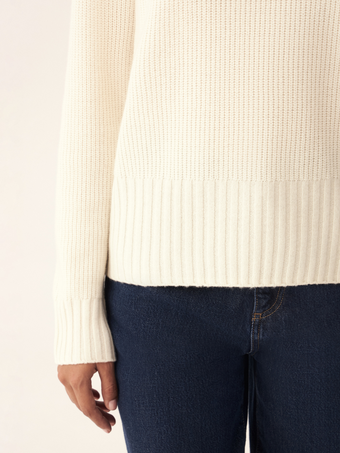 Джемпер из кашемира и шерсти — это сочетание роскоши и комфорта, идеально подходящее для создания уютного и стильного образа. Смесь кашемира и шерсти обеспечивает мягкость и тепло, делая этот джемпер идеальным для прохладных дней. Ребристая текстура придает модели объем и структурированность, а аккуратный круглый вырез и длинные рукава подчеркивают его классический стиль. Благодаря универсальному дизайну и нейтральному цвету, этот джемпер легко сочетается с различными элементами гардероба, будь то джинсы или более формальные брюки. На модели размер S.