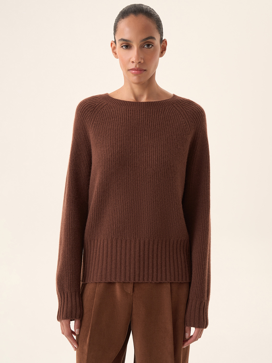 Джемпер из кашемира и шерсти — это сочетание роскоши и комфорта, идеально подходящее для создания уютного и стильного образа. Смесь кашемира и шерсти обеспечивает мягкость и тепло, делая этот джемпер идеальным для прохладных дней. Ребристая текстура придает модели объем и структурированность, а аккуратный круглый вырез и длинные рукава подчеркивают его классический стиль. Благодаря универсальному дизайну и нейтральному цвету, этот джемпер легко сочетается с различными элементами гардероба, будь то джинсы или более формальные брюки. На модели размер S.