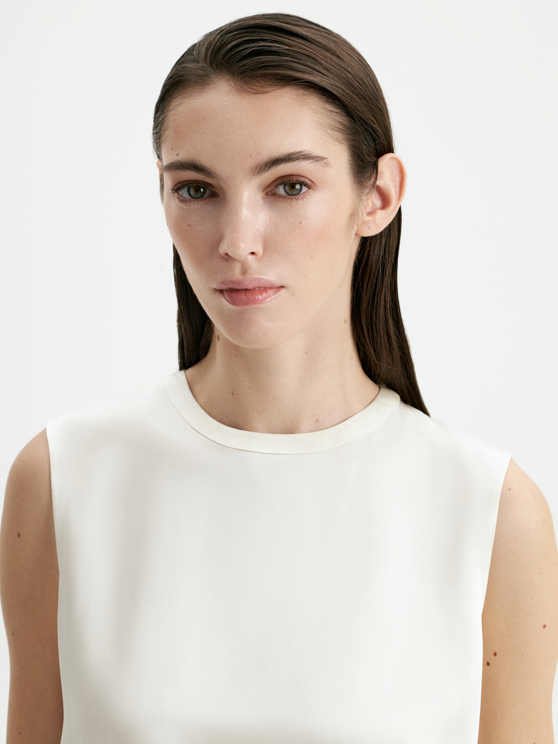Топ из 100% шелка — это воплощение элегантности и утонченности. Лаконичный дизайн и благородный материал делают его универсальным элементом гардероба. Мягкий шелк дарит комфорт, а минималистичный крой подчеркивает изящность и стиль. Топ представлен в классических черном и белом цветах, которые легко комбинируются с любыми образами: от деловых костюмов до вечерних ансамблей. Этот топ станет идеальной основой для стильных сочетаний, где комфорт и изысканность идут рука об руку. На модели размер S. Параметры модели: рост 177, 80-60-90.