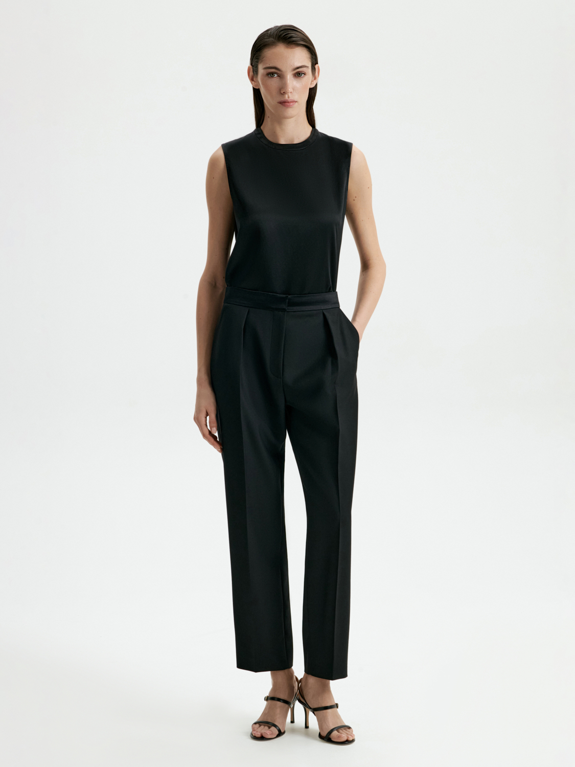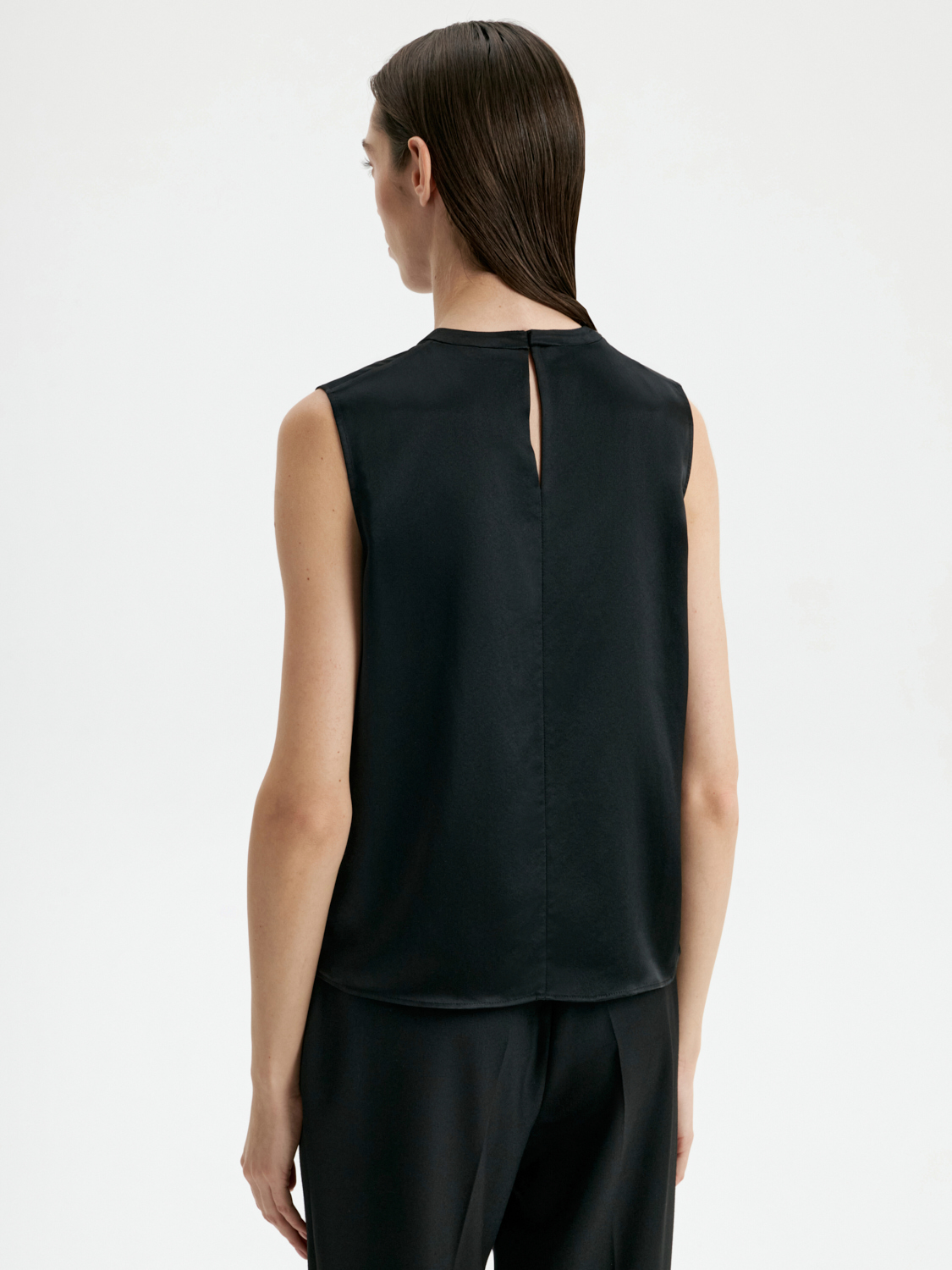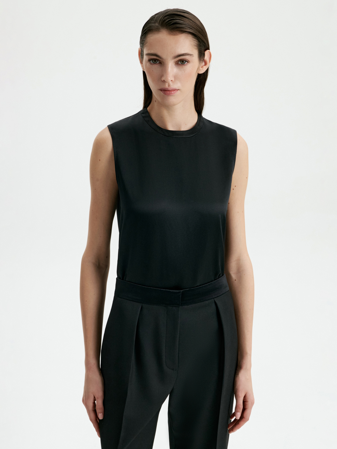 Топ из 100% шелка — это воплощение элегантности и утонченности. Лаконичный дизайн и благородный материал делают его универсальным элементом гардероба. Мягкий шелк дарит комфорт, а минималистичный крой подчеркивает изящность и стиль. Топ представлен в классических черном и белом цветах, которые легко комбинируются с любыми образами: от деловых костюмов до вечерних ансамблей. Этот топ станет идеальной основой для стильных сочетаний, где комфорт и изысканность идут рука об руку. На модели размер S. Параметры модели: рост 177, 80-60-90.