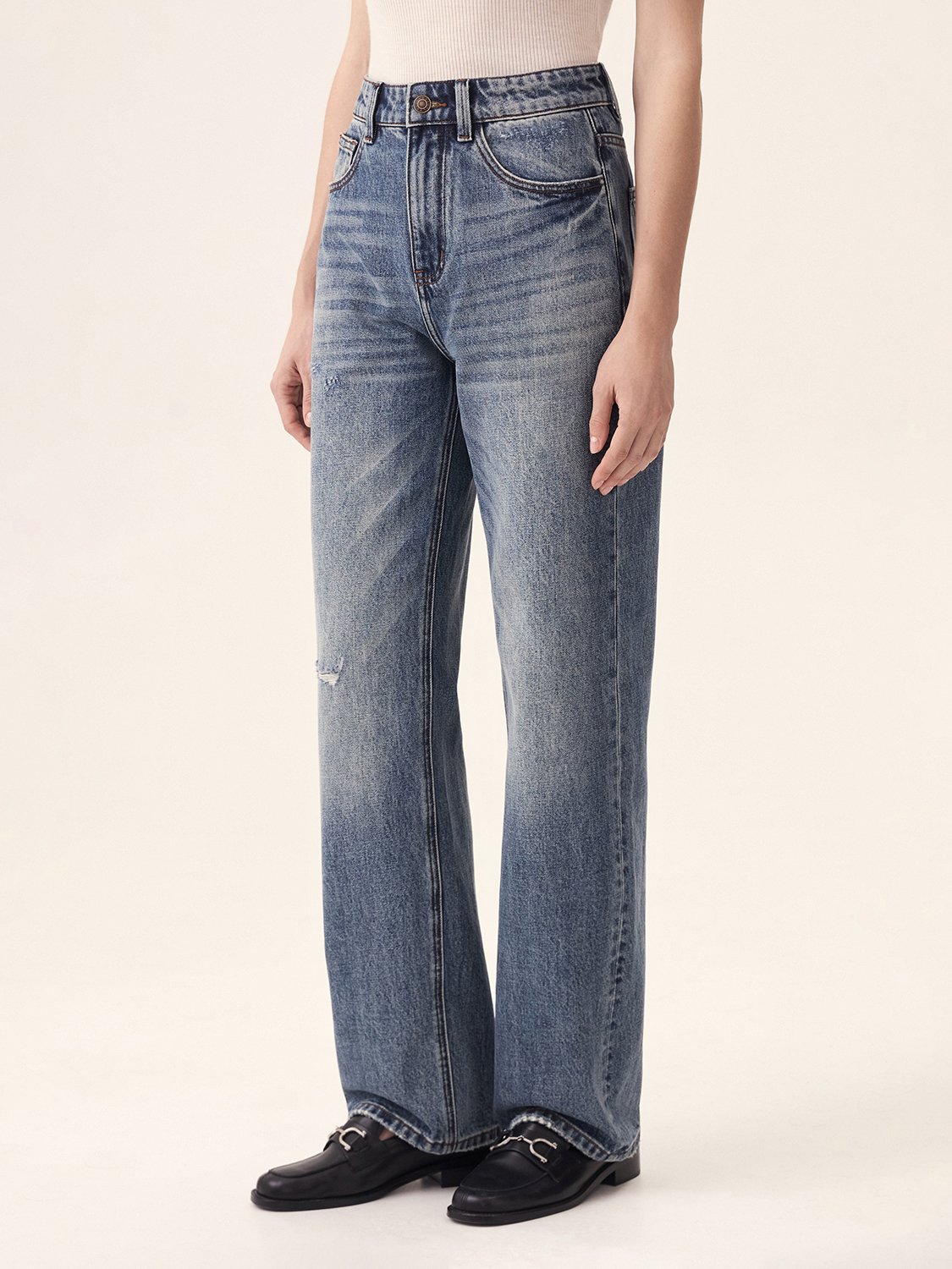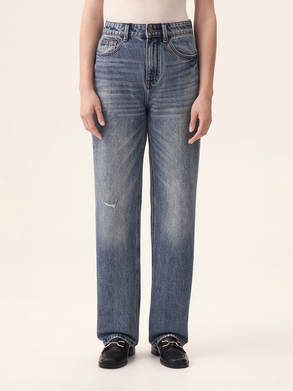 Джинсы прямого кроя станут основой любого образа. Изготовленные из высококачественного хлопка, они обладают прочной и износостойкой текстурой, что обеспечивает им долговечность. Средняя посадка и прямой крой создают элегантный силуэт, подчеркивающий фигуру и позволяющий свободно двигаться. Эти джинсы легко комбинируются с различными стилями, будь то повседневный или более формальный. Универсальный фасон позволяет носить их как с уютным свитером, так и с классической рубашкой, делая незаменимым элементом гардероба в любое время года.