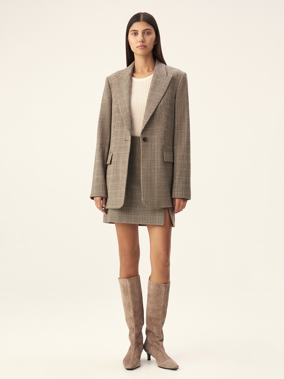 Эти стильные сапоги из мягкой натуральной замши станут роскошным акцентом вашего осеннего гардероба. Высокий фасон визуально удлиняет ноги и придает силуэту элегантности, а нейтральный серо-бежевый оттенок легко сочетается с любыми цветами и фактурами. Удобный устойчивый каблук обеспечивает комфорт в течение всего дня, а зауженный мыс добавляет модели утонченности. Эти сапоги идеально подойдут как для деловых образов с юбкой-карандаш, так и для расслабленных комплектов с джинсами и свитером. Превосходное качество замши гарантирует долговечность, а классический дизайн позволяет носить их на протяжении нескольких сезонов.