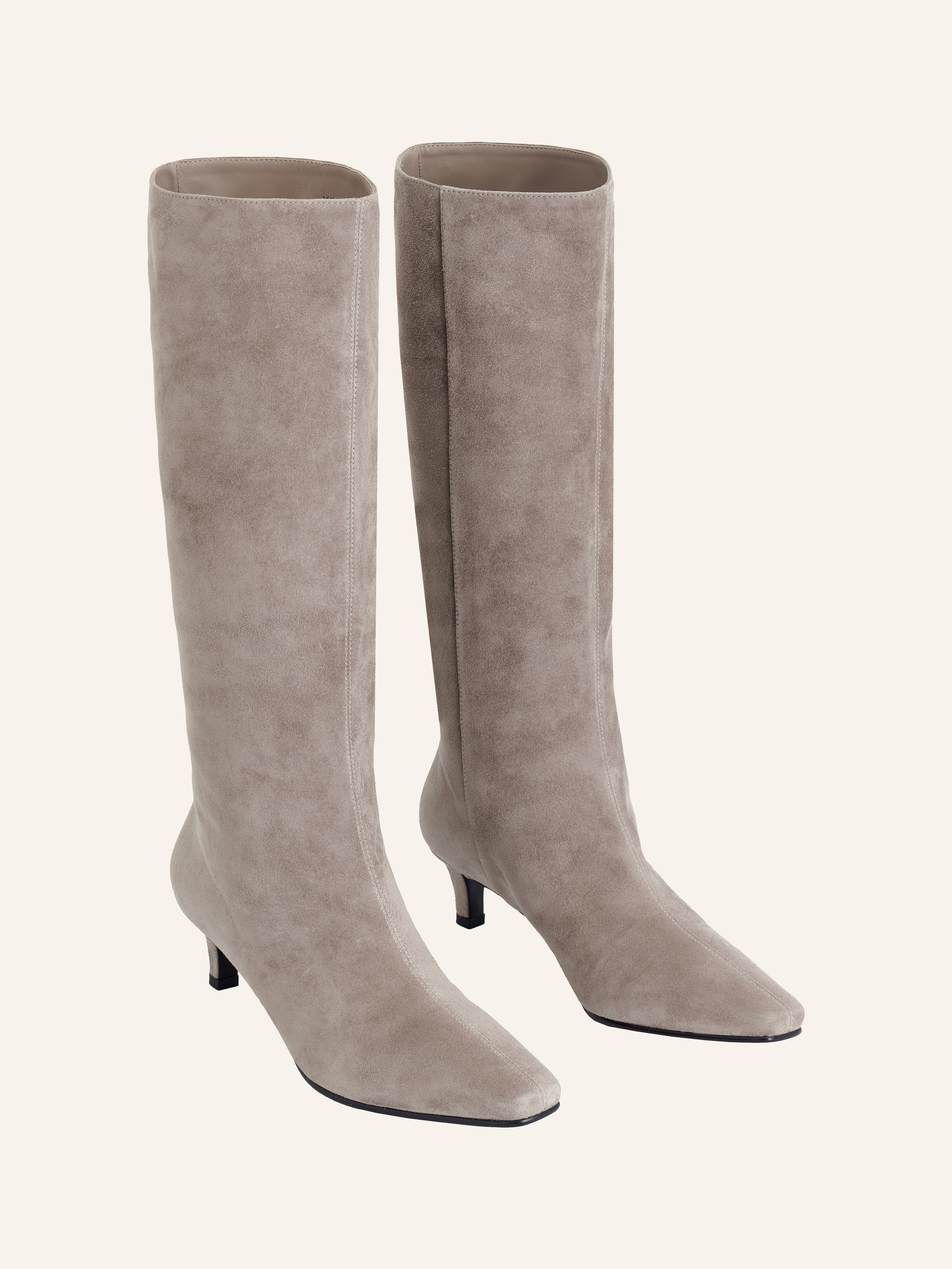Эти стильные сапоги из мягкой натуральной замши станут роскошным акцентом вашего осеннего гардероба. Высокий фасон визуально удлиняет ноги и придает силуэту элегантности, а нейтральный серо-бежевый оттенок легко сочетается с любыми цветами и фактурами. Удобный устойчивый каблук обеспечивает комфорт в течение всего дня, а зауженный мыс добавляет модели утонченности. Эти сапоги идеально подойдут как для деловых образов с юбкой-карандаш, так и для расслабленных комплектов с джинсами и свитером. Превосходное качество замши гарантирует долговечность, а классический дизайн позволяет носить их на протяжении нескольких сезонов.