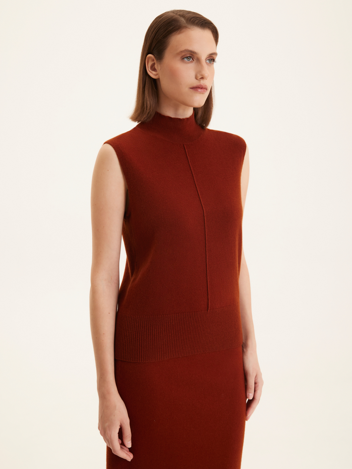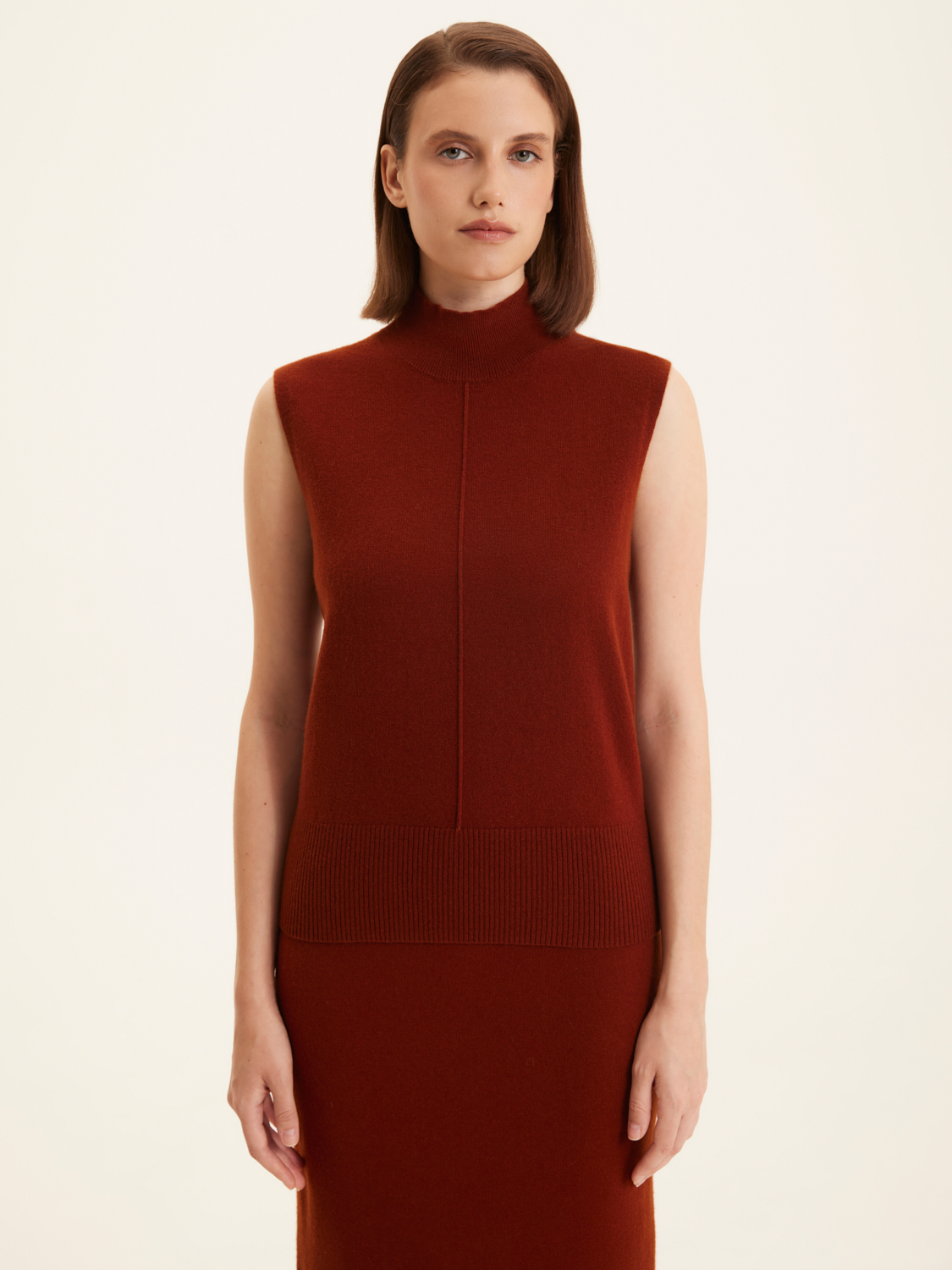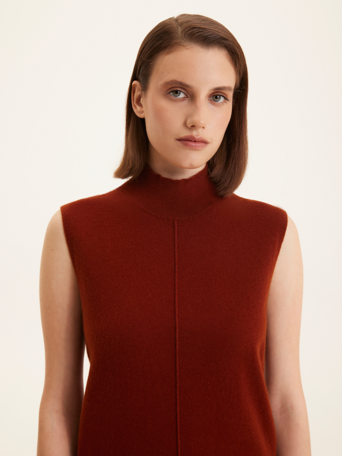 Водолазка из мериносовой шерсти выполнена в элегантном стиле с акцентом на минимализм.Отсутствие рукавов добавляет современный штрих к классическому дизайну. Высокий воротник обеспечивает дополнительное тепло и придает образу утонченность. Прямая линия плеч и гладкая текстура делают водолазку идеальной для создания многослойных ансамблей. Низ изделия имеет эластичную резинку, что обеспечивает удобную посадку и сохраняет форму. Ее можно носить как самостоятельно, так и под пиджак или кардиган для создания стильного и комфортного образа. На модели размер S. Параметры модели: рост 176, 85-60-89.