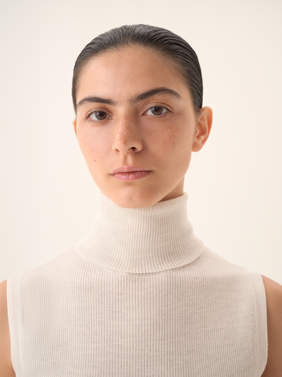 Эта водолазка без рукавов выполнена в актуальном рубчике, что придает изделию современный и стильный вид. Высокий воротник подчеркивает утонченность образа, создавая акцент на линии шеи. Приталенный крой мягко облегает фигуру, создавая женственный силуэт и обеспечивая комфорт в течение всего дня. Водолазка идеально сочетается с различными вещами вашего гардероба, будь то классические брюки или юбка, создавая современные и элегантные аутфиты. Подойдет для создания многослойных образов или как самостоятельный элемент гардероба. На модели размер S. Параметры модели: рост 175, 84-59-91.
