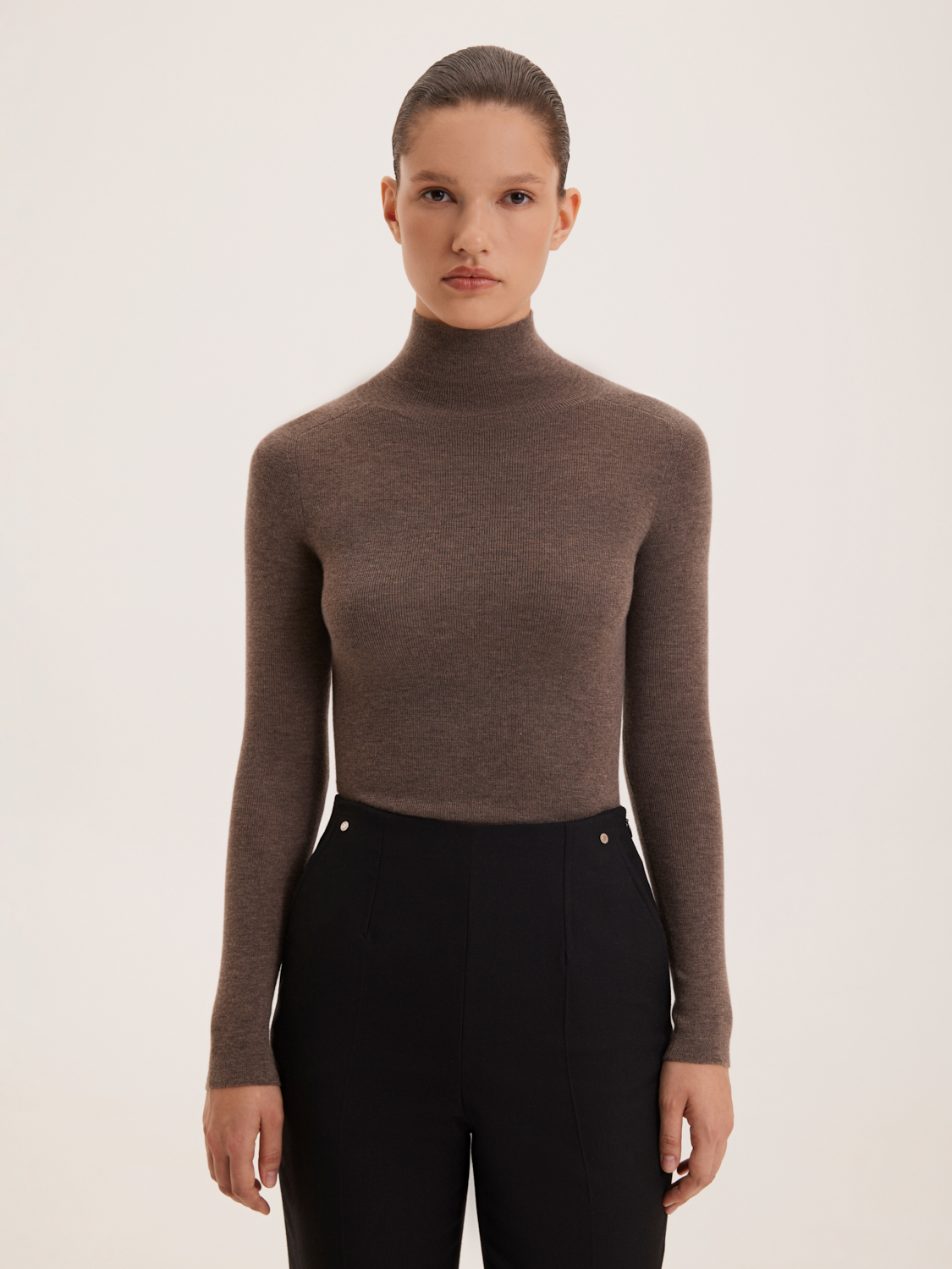 Водолазка из мериносовой шерсти не только обеспечит комфорт и тепло в прохладное время года, но и подчеркнет вашу элегантность благодаря своему классическому и лаконичному стилю. Приталенный крой с длинными рукавами и высоким воротником придает образу женственности и элегантности. Минималистичный дизайн без лишних деталей делает ее универсальной и подходящей для различных случаев. Водолазку можно носить самостоятельно в комбинации с брюками, юбками или джинсами, создавая как деловые, так и повседневные образы. Она также идеально подходит для создания многослойных образов: носите ее под жакетами, кардиганами или пальто для дополнительного тепла и комфорта. На модели размер S. Параметры модели: рост 176, 85-60-89.