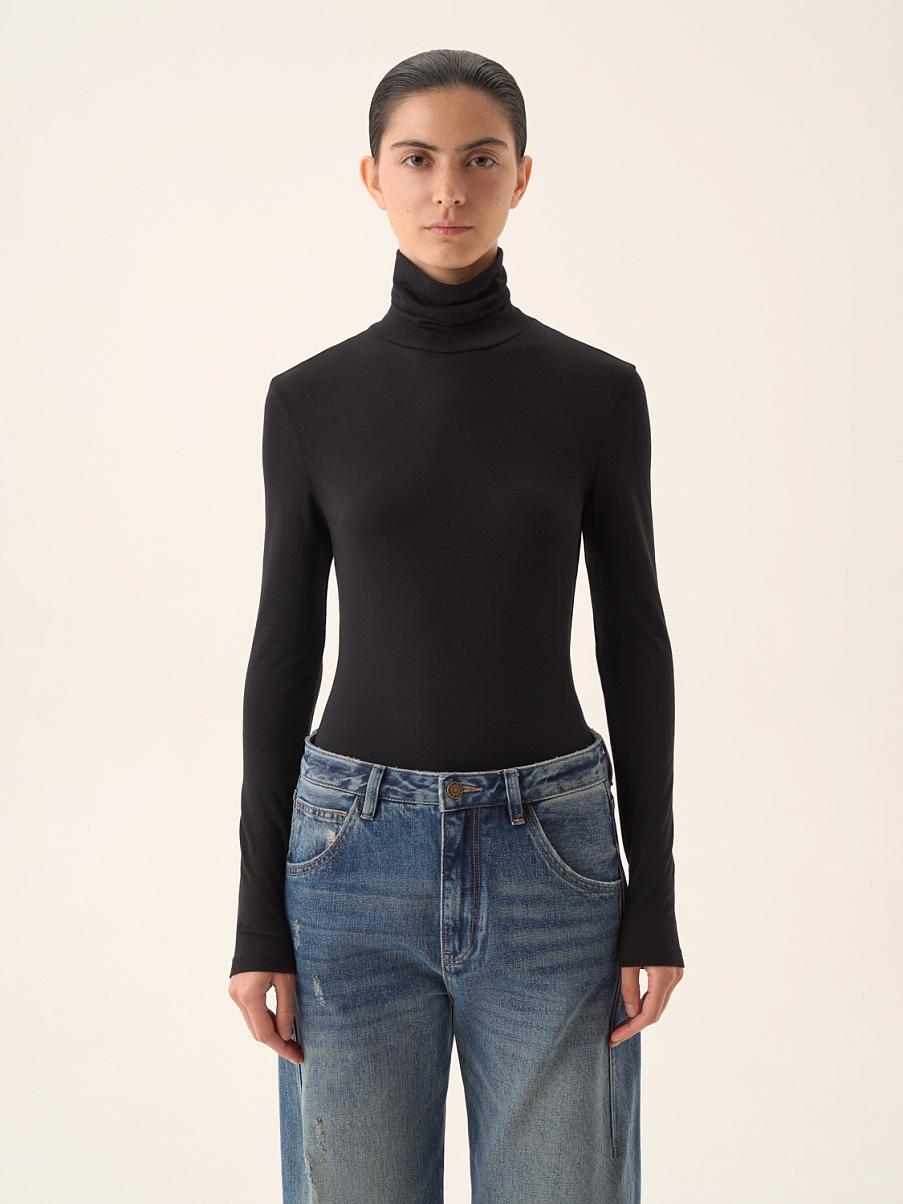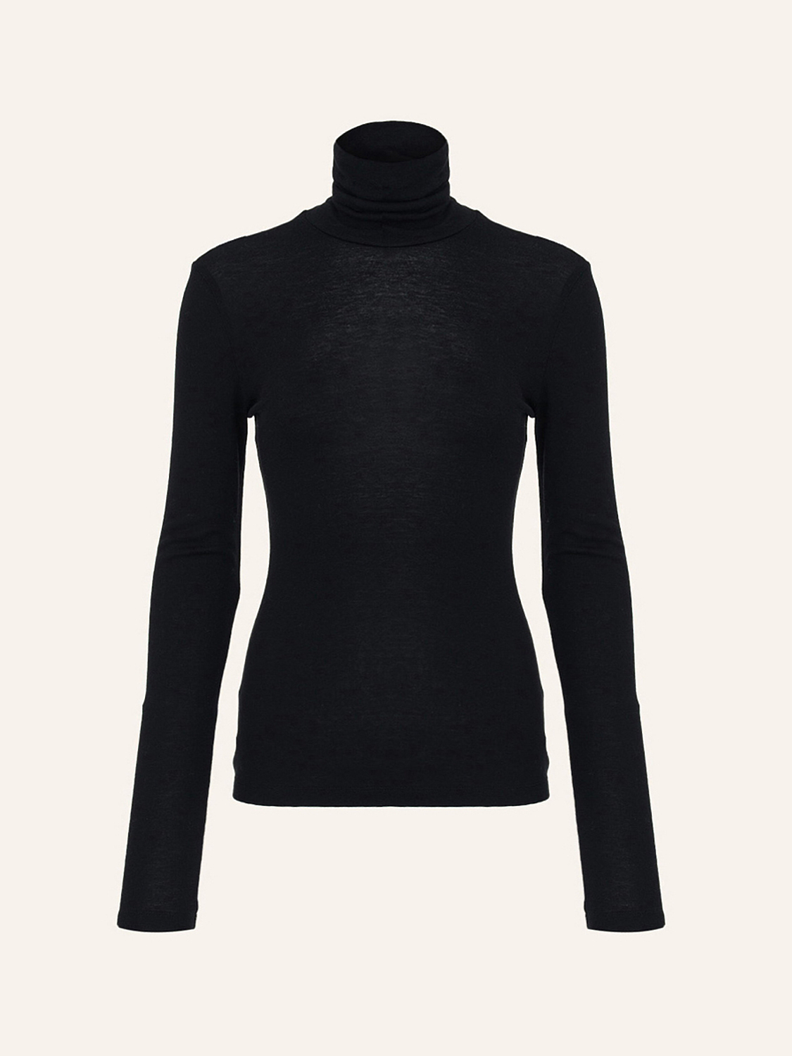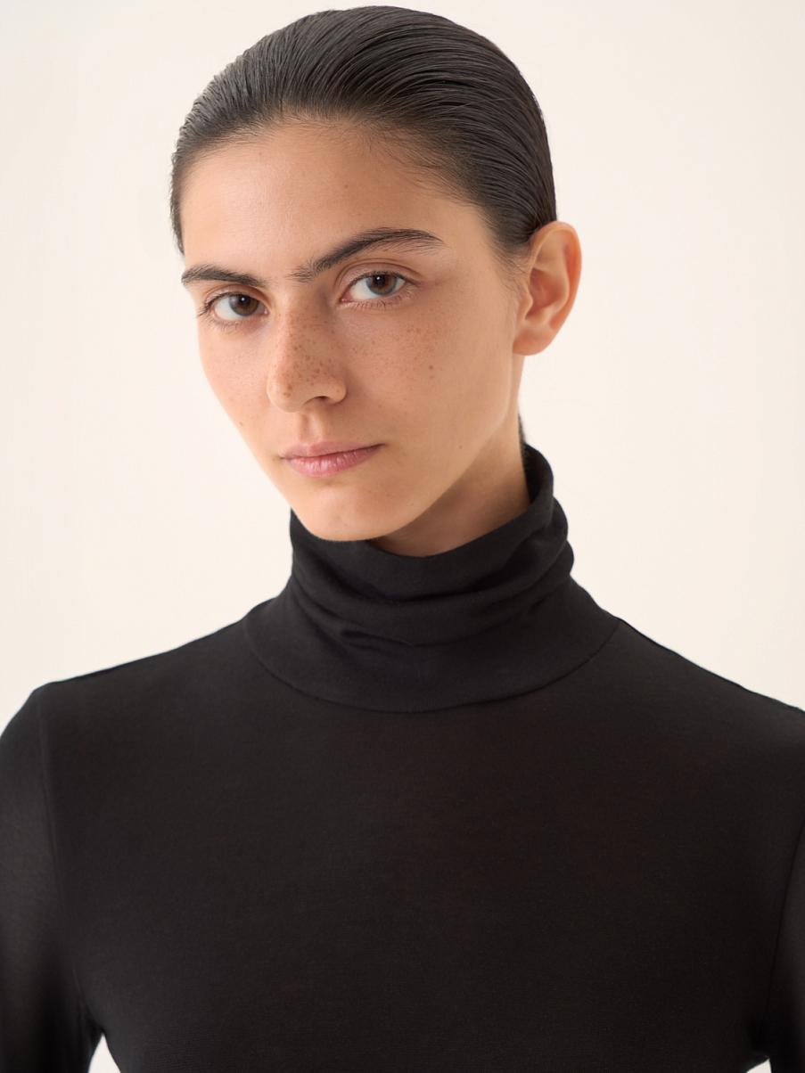 Водолазка из мягкого трикотажа с добавлением шерсти идеально подходит для создания базовых повседневных образов. Тщательно продуманный крой акцентирует внимание на силуэте, создавая гармоничный и утонченный образ. Высокий воротник добавляет модели элегантности и утонченности, придавая завершенность образу и подчеркивая линию шеи. Минималистичный дизайн позволяют легко сочетать водолазку с различными элементами гардероба — от классических брюк до джинсов и юбок. На модели размер S.