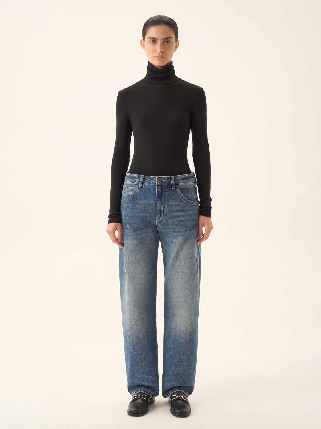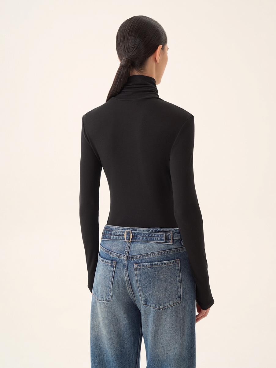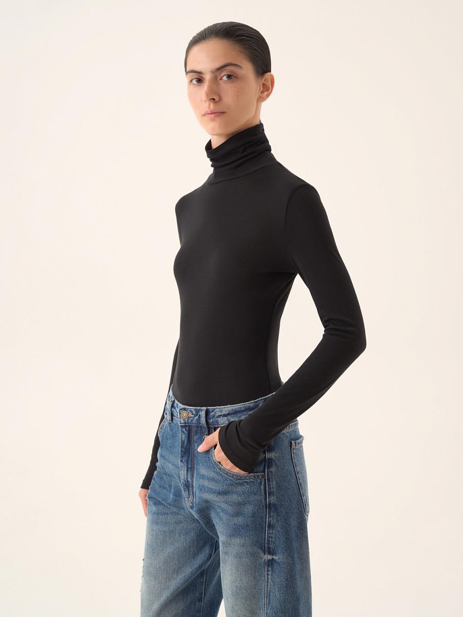 Водолазка из мягкого трикотажа с добавлением шерсти идеально подходит для создания базовых повседневных образов. Тщательно продуманный крой акцентирует внимание на силуэте, создавая гармоничный и утонченный образ. Высокий воротник добавляет модели элегантности и утонченности, придавая завершенность образу и подчеркивая линию шеи. Минималистичный дизайн позволяют легко сочетать водолазку с различными элементами гардероба — от классических брюк до джинсов и юбок. На модели размер S.
