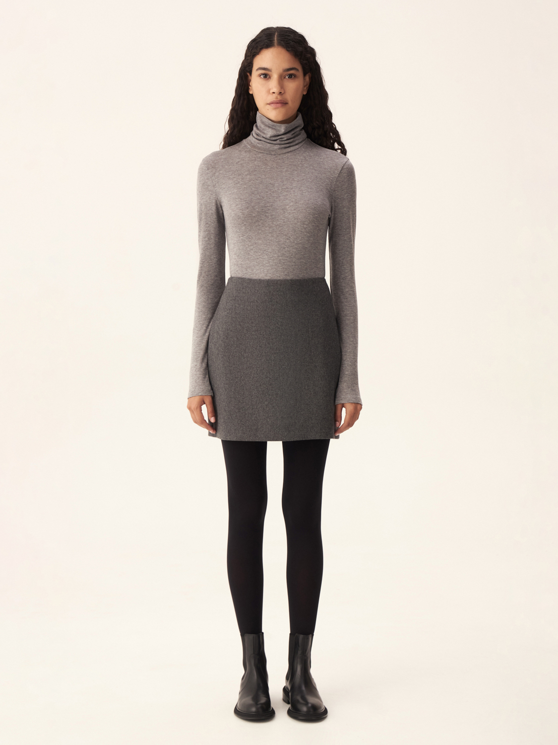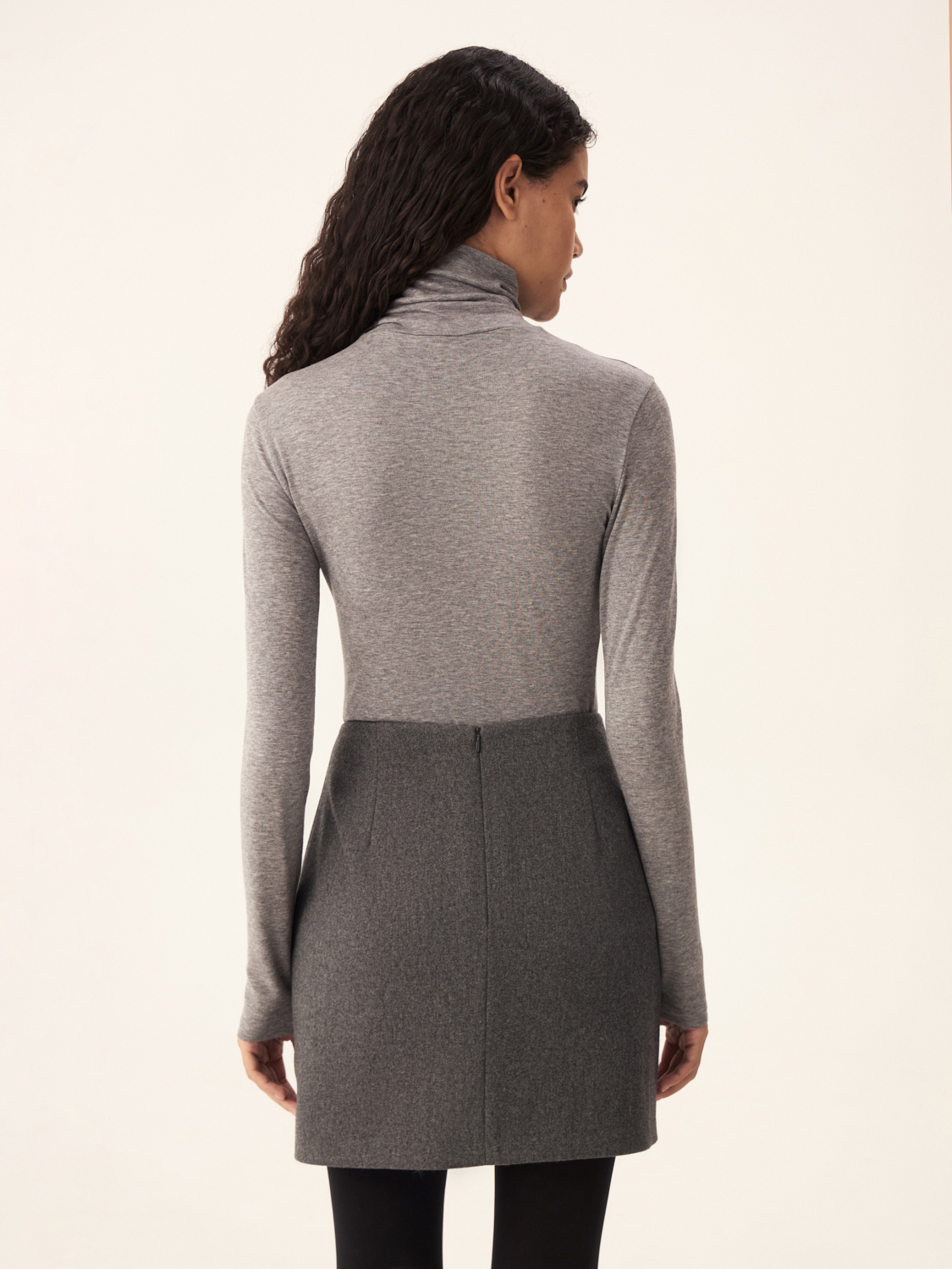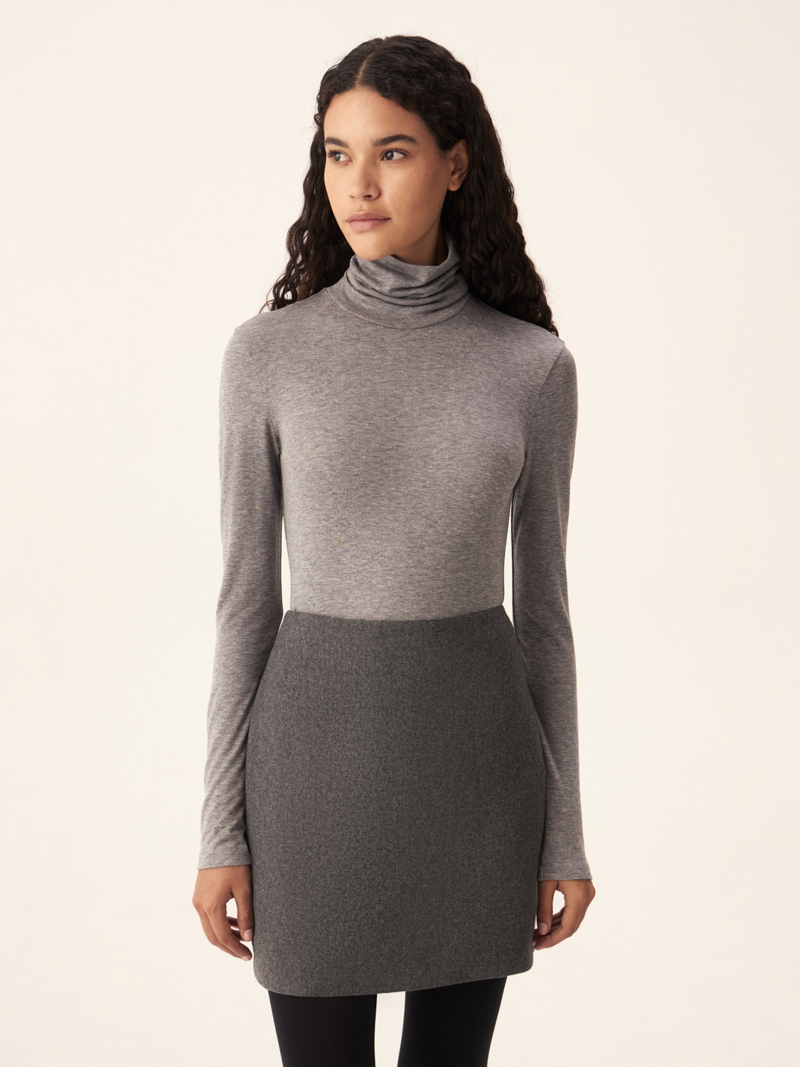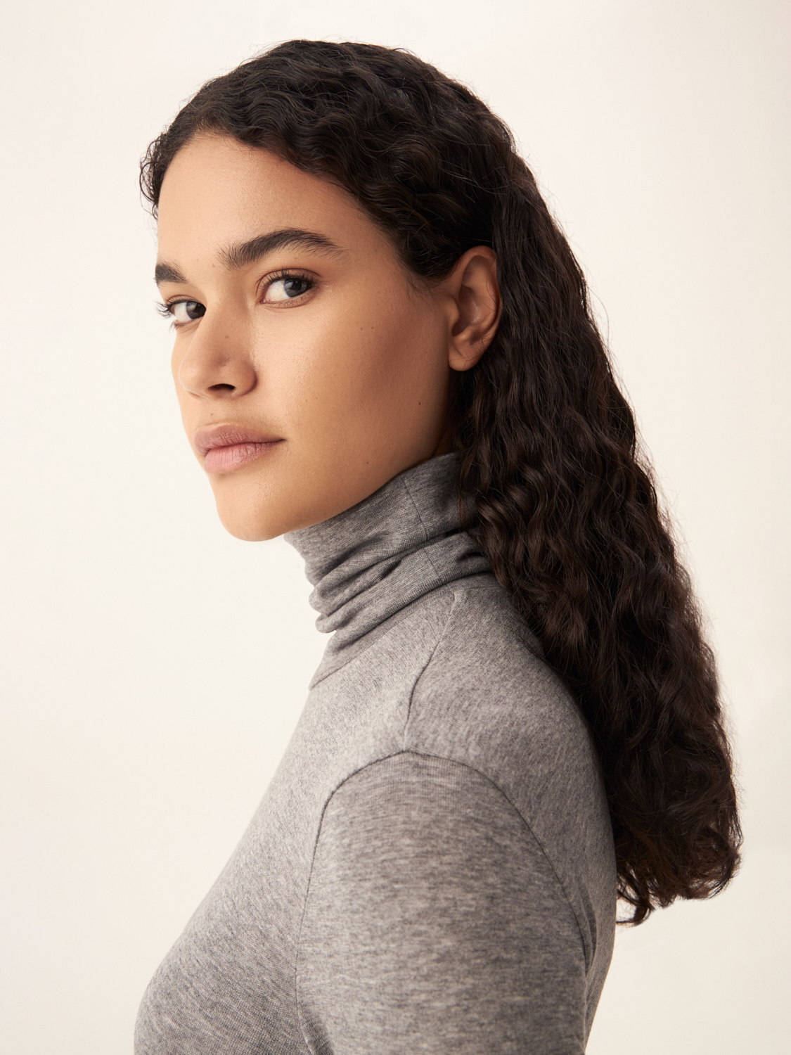 Водолазка из мягкого трикотажа с добавлением шерсти идеально подходит для создания базовых повседневных образов. Тщательно продуманный крой акцентирует внимание на силуэте, создавая гармоничный и утонченный образ. Высокий воротник добавляет модели элегантности и утонченности, придавая завершенность образу и подчеркивая линию шеи. Минималистичный дизайн позволяют легко сочетать водолазку с различными элементами гардероба — от классических брюк до джинсов и юбок. На модели размер S.