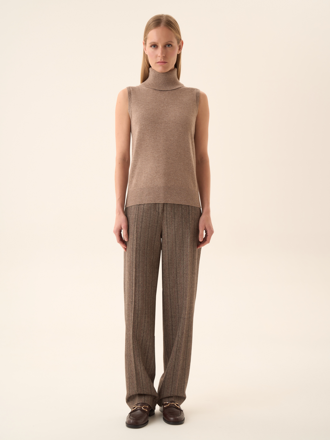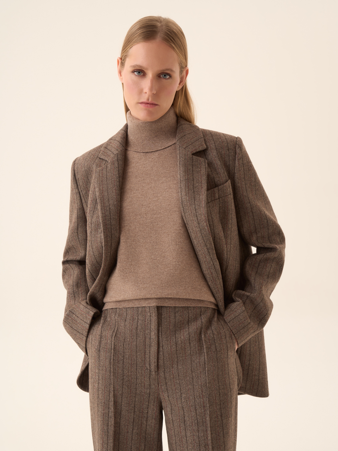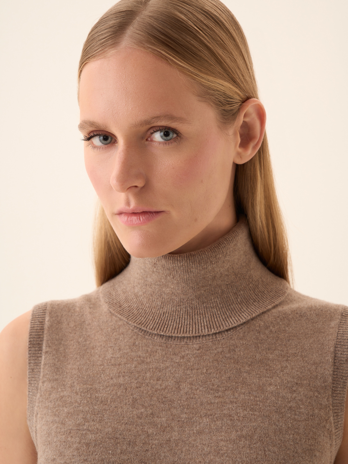 Водолазка из шерсти мериноса — непревзойденный выбор для тех, кто ценит тепло и комфорт в холодное время года. Мягкая и легкая шерсть мериноса сохраняет тепло, позволяя коже дышать, что делает эту модель идеальной для многослойных образов. Лаконичный дизайн и плотная текстура добавляют элегантности и уюта, а высокая горловина защищает от холода. Эта водолазка будет отлично сочетаться как с классическими брюками, так и с юбкой, создавая стильный и практичный комплект для зимних дней.
