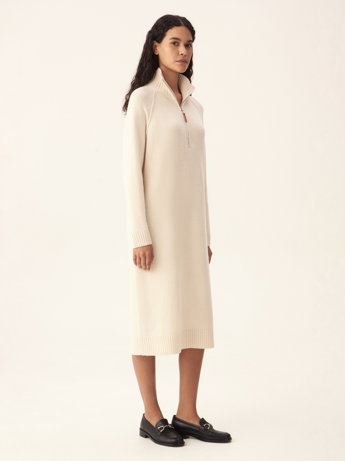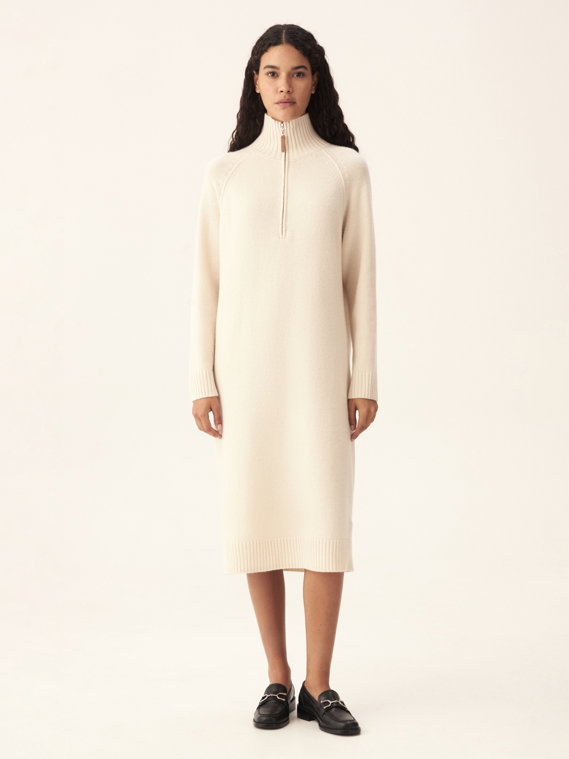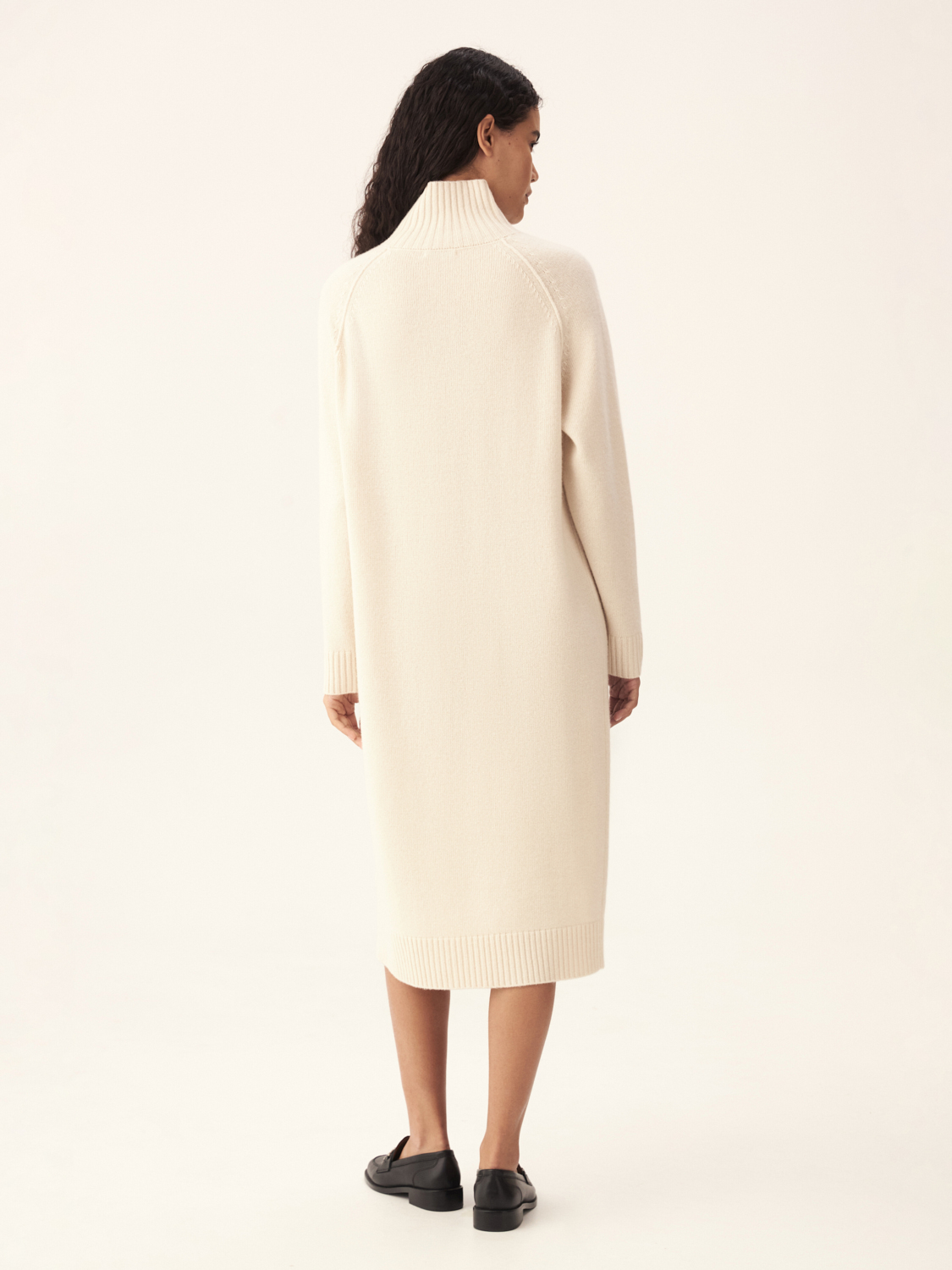 Платье миди из шерсти мериноса — это идеальное сочетание стиля и уюта для холодного сезона. Мягкая и теплая ткань создает ощущение комфорта, а лаконичный дизайн с короткой молнией и воротником-стойкой придает изделию современный вид. Это платье подходит как для повседневной носки, так и для более торжественных случаев. Его можно легко комбинировать с различными аксессуарами и верхней одеждой, создавая многослойные образы в монохромной гамме. Идеальный выбор для тех, кто ценит элегантность и практичность.