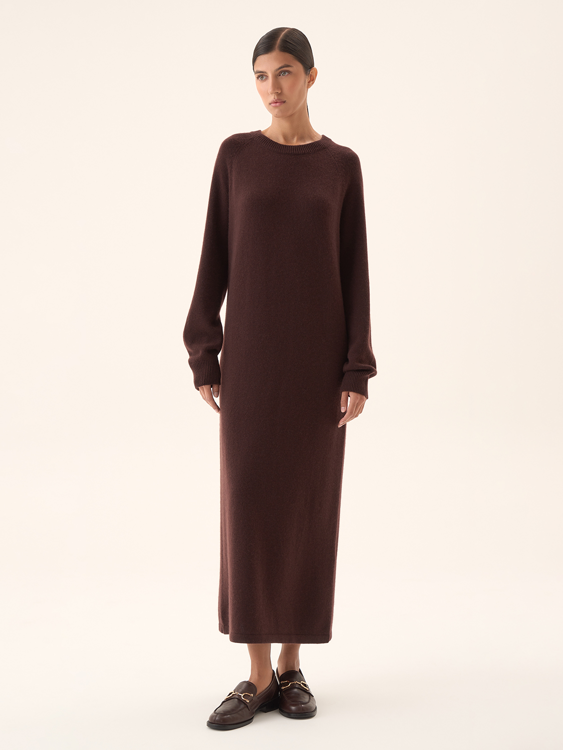 Прямое платье из шерсти мериноса и кашемира — утонченное сочетание минимализма и комфорта. Мягкость кашемира и тепло мериносовой шерсти создают ощущение легкости и уюта, позволяя платью стать идеальным выбором для прохладных дней. Прямой крой придает образу элегантность и сдержанность, а лаконичный дизайн позволяет легко адаптировать модель к разным стилям. Носите это платье как базовый элемент — с изысканными украшениями для вечернего выхода или в сочетании с пальто и ботинками для повседневного шика.