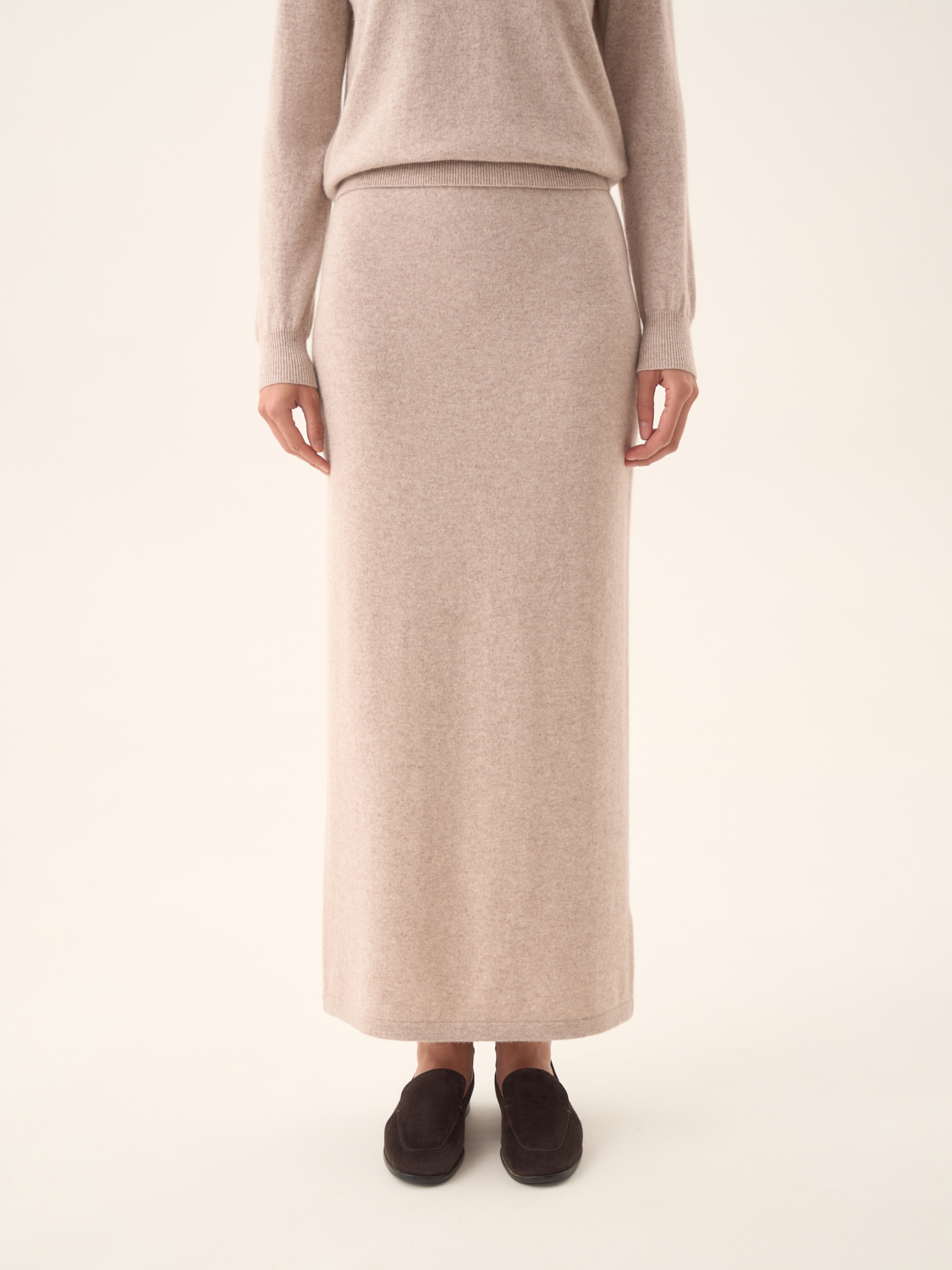Эта юбка макси — воплощение утонченного стиля и абсолютного комфорта. Изготовленная из смеси кашемира и шерсти, она дарит мягкость и тепло, идеально подходит для прохладного сезона. Прямой силуэт и минималистичный дизайн делают юбку универсальной для сочетания как с объемными свитерами, так и с лаконичными топами, создавая гармоничные образы для повседневных или более формальных случаев. Юбка длиной до щиколоток подчеркивает женственность и стройность фигуры, а натуральные материалы обеспечивают комфорт в течение всего дня. Параметры модели: рост 174 см, размер S.