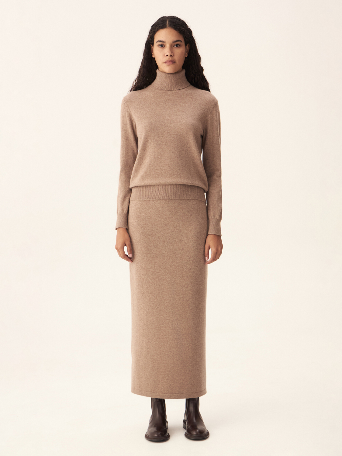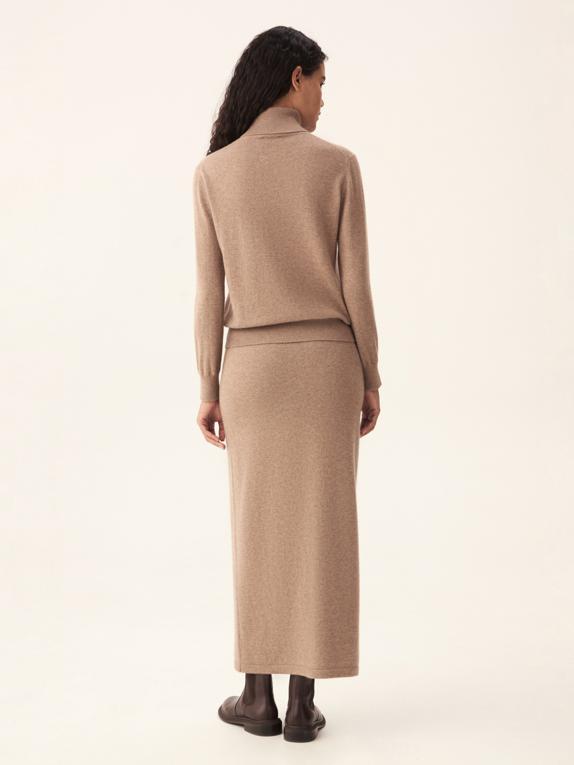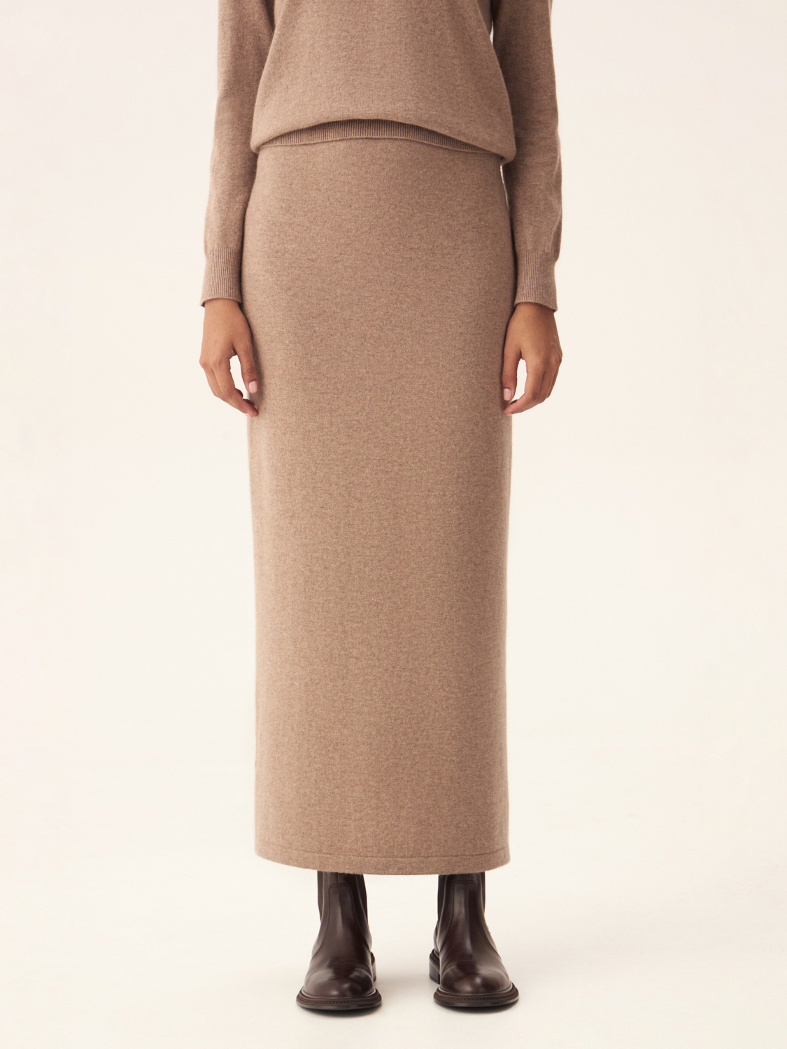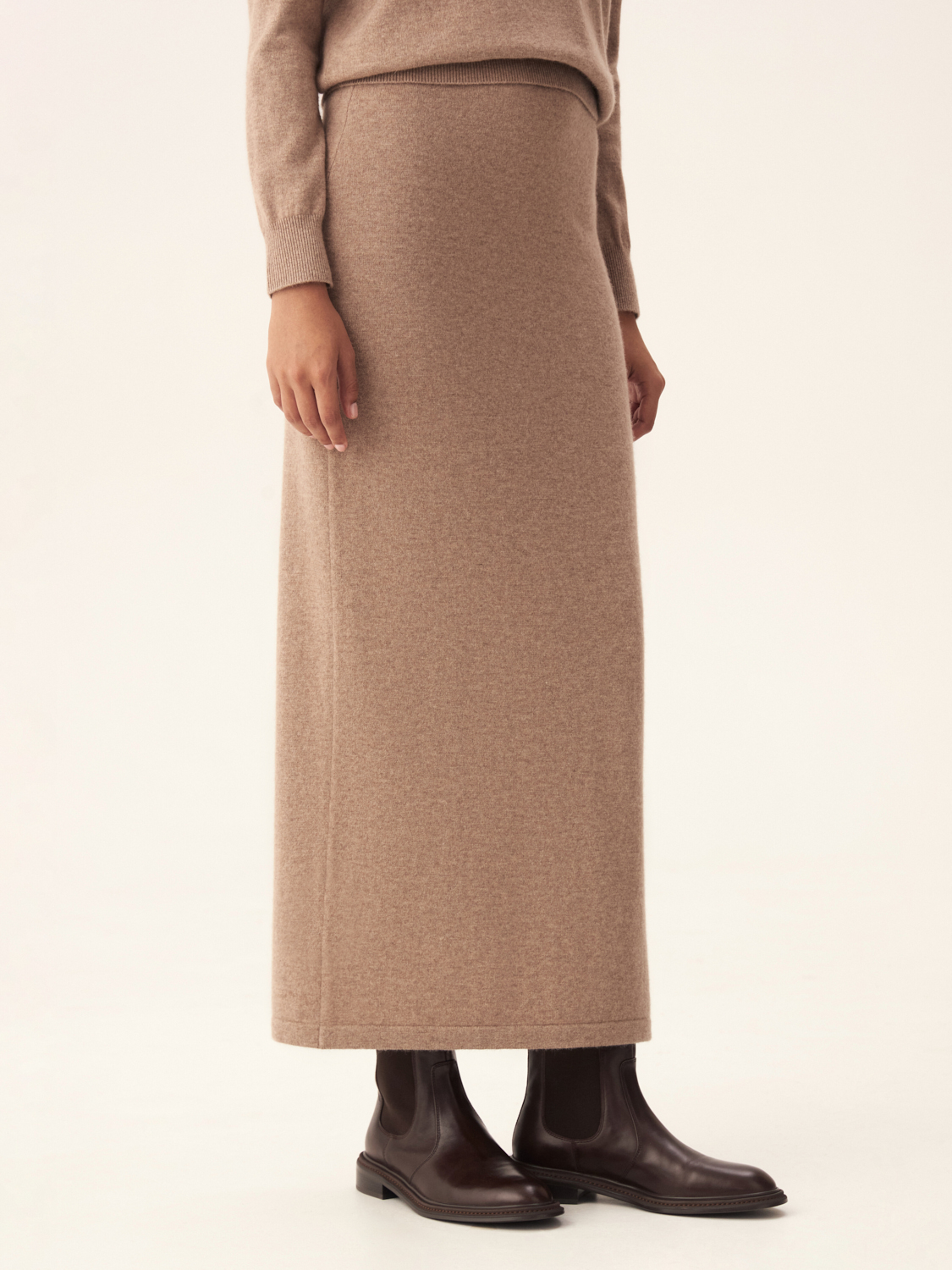 Эта юбка макси — воплощение утонченного стиля и абсолютного комфорта. Изготовленная из смеси кашемира и шерсти, она дарит мягкость и тепло, идеально подходит для прохладного сезона. Прямой силуэт и минималистичный дизайн делают юбку универсальной для сочетания как с объемными свитерами, так и с лаконичными топами, создавая гармоничные образы для повседневных или более формальных случаев. Юбка длиной до щиколоток подчеркивает женственность и стройность фигуры, а натуральные материалы обеспечивают комфорт в течение всего дня. Параметры модели: рост 174 см, размер S.