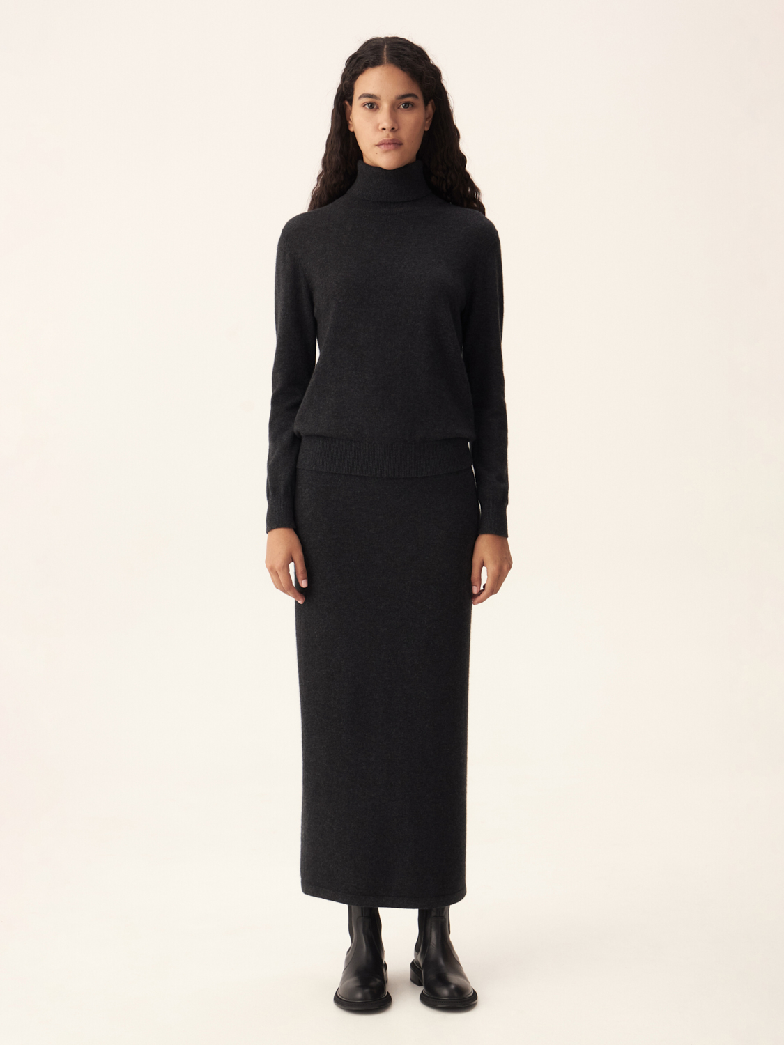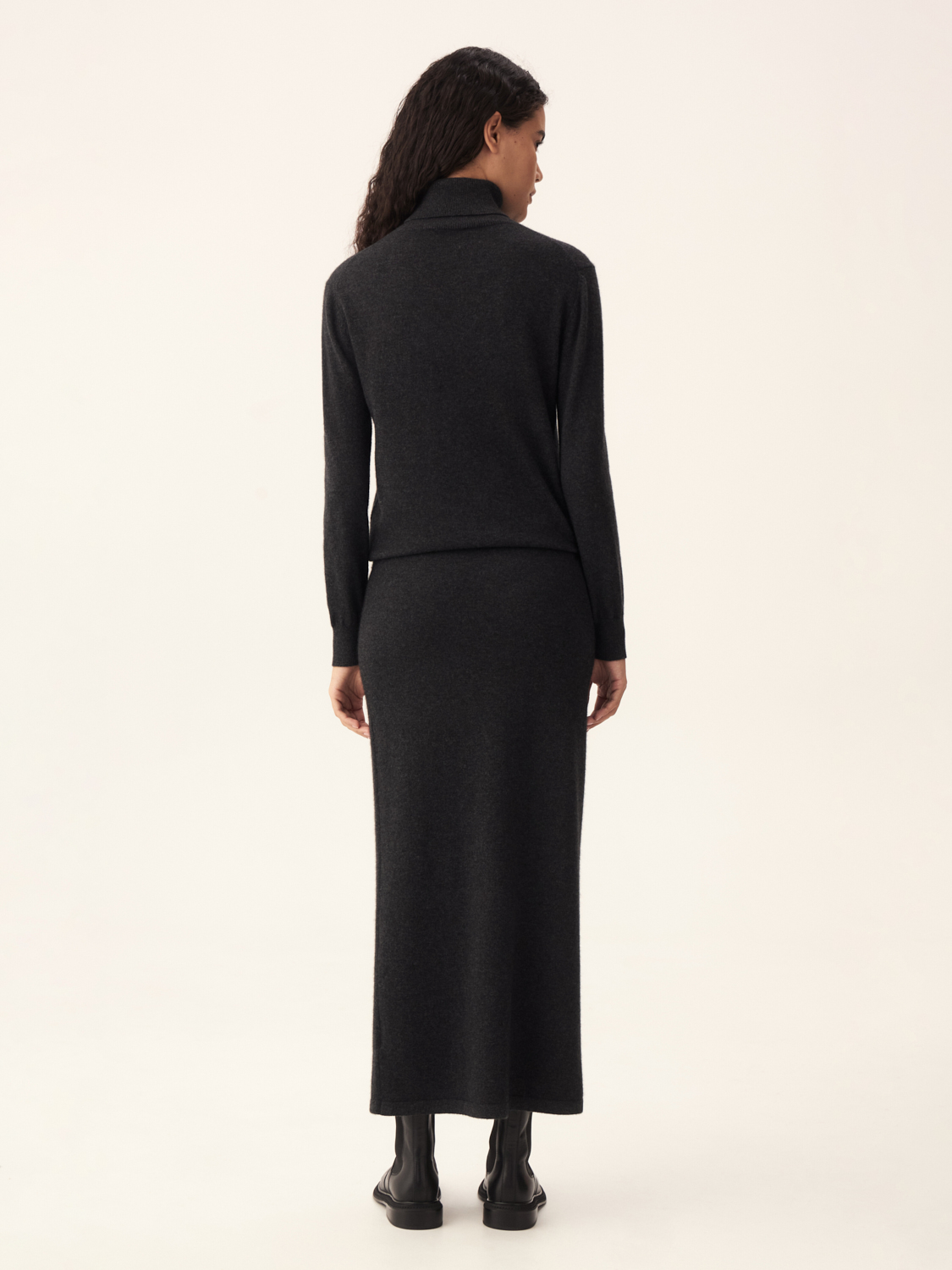 Эта юбка макси — воплощение утонченного стиля и абсолютного комфорта. Изготовленная из смеси кашемира и шерсти, она дарит мягкость и тепло, идеально подходит для прохладного сезона. Прямой силуэт и минималистичный дизайн делают юбку универсальной для сочетания как с объемными свитерами, так и с лаконичными топами, создавая гармоничные образы для повседневных или более формальных случаев. Юбка длиной до щиколоток подчеркивает женственность и стройность фигуры, а натуральные материалы обеспечивают комфорт в течение всего дня. Параметры модели: рост 174 см, размер S.