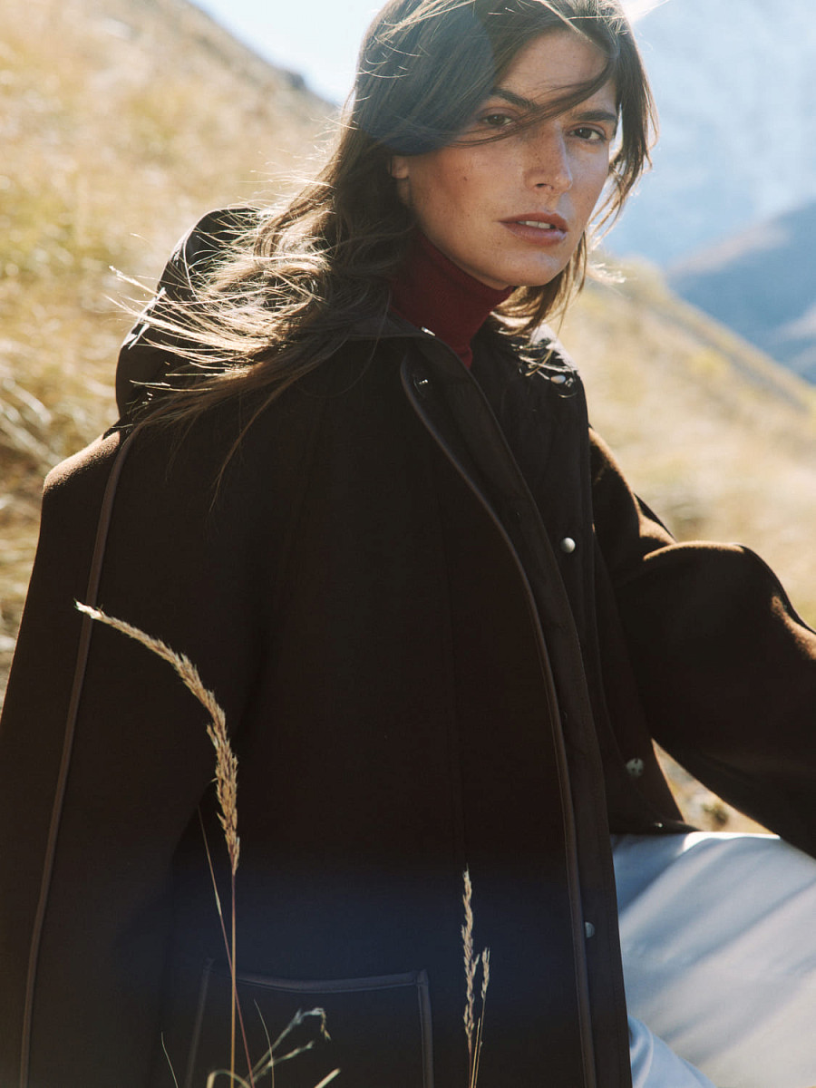 Модель Даша Малыгина выступает главным героем этой истории, демонстрируя одежду для тех, кто ценит свободу выбора и всегда остается верен себе. Благородные оттенки земли, неба и камня переносят в пространство, где каждый элемент тщательно подобран. Шерсть, кашемир и плотный хлопок здесь не просто материалы, а выражение силы и стойкости, словно напоминающее о постоянстве природы.
