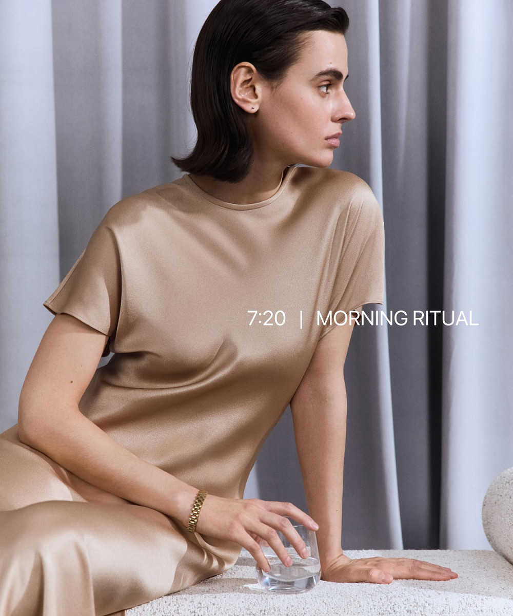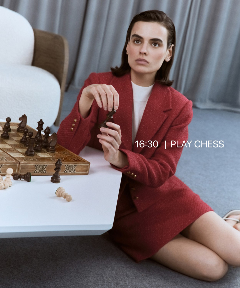 Утро в мягкости трикотажа, неспешный ритуал нового дня. Днем ее уверенность воплощается в четком силуэте — продуманный крой, безупречная посадка, элегантность. В ритме города она остается динамичной, выбирая casual-образы, сочетающие комфорт и стиль. Вечером — плавность движений, неторопливость, дом, где ее ждут тепло, мягкие ткани, уют.